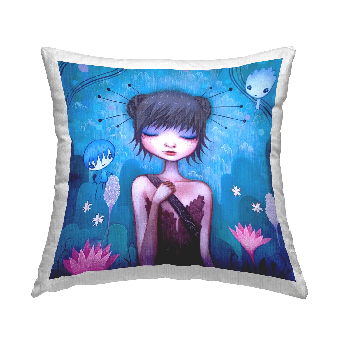 Girl in Fantasy Landscape Design by Jeremiah Ketner Throw Pillow