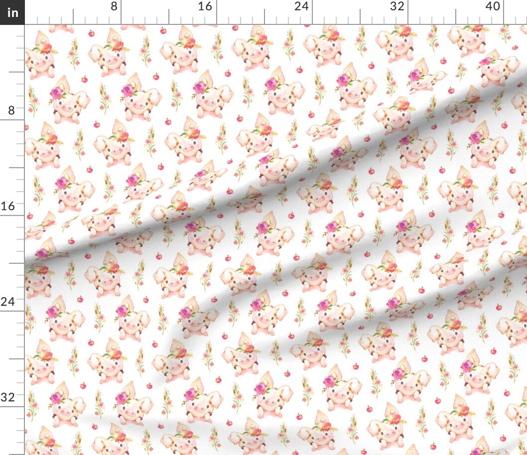 Girl Pig Flowers Apples Scale Piggy Cute Little Country Farm Girls Custom Printed Fabric by Spoonflower Various Fabrics by the Yard or Fat Quarter