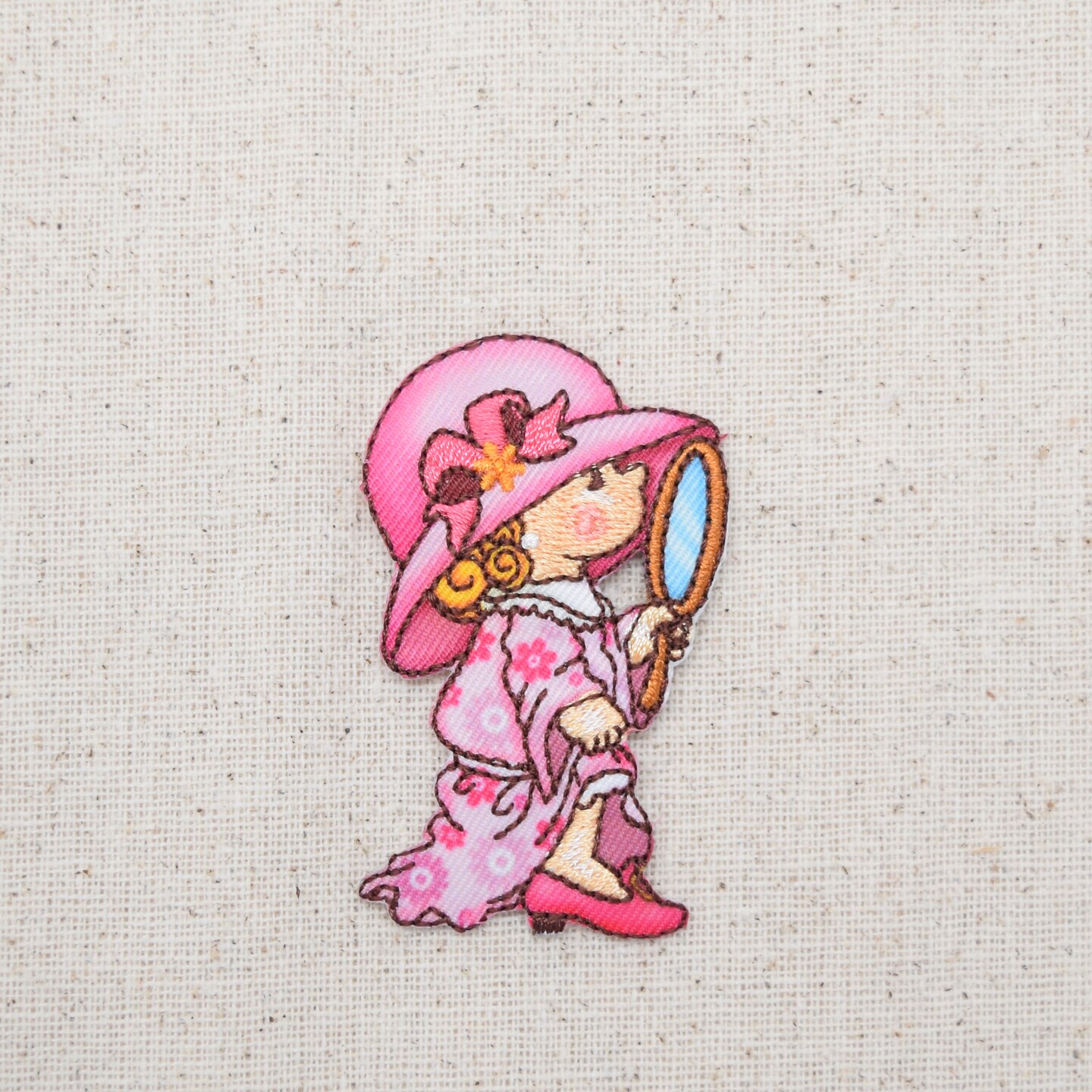 Girl Playing Dress-up, Pink Dress, Embroidered, Iron on Patch