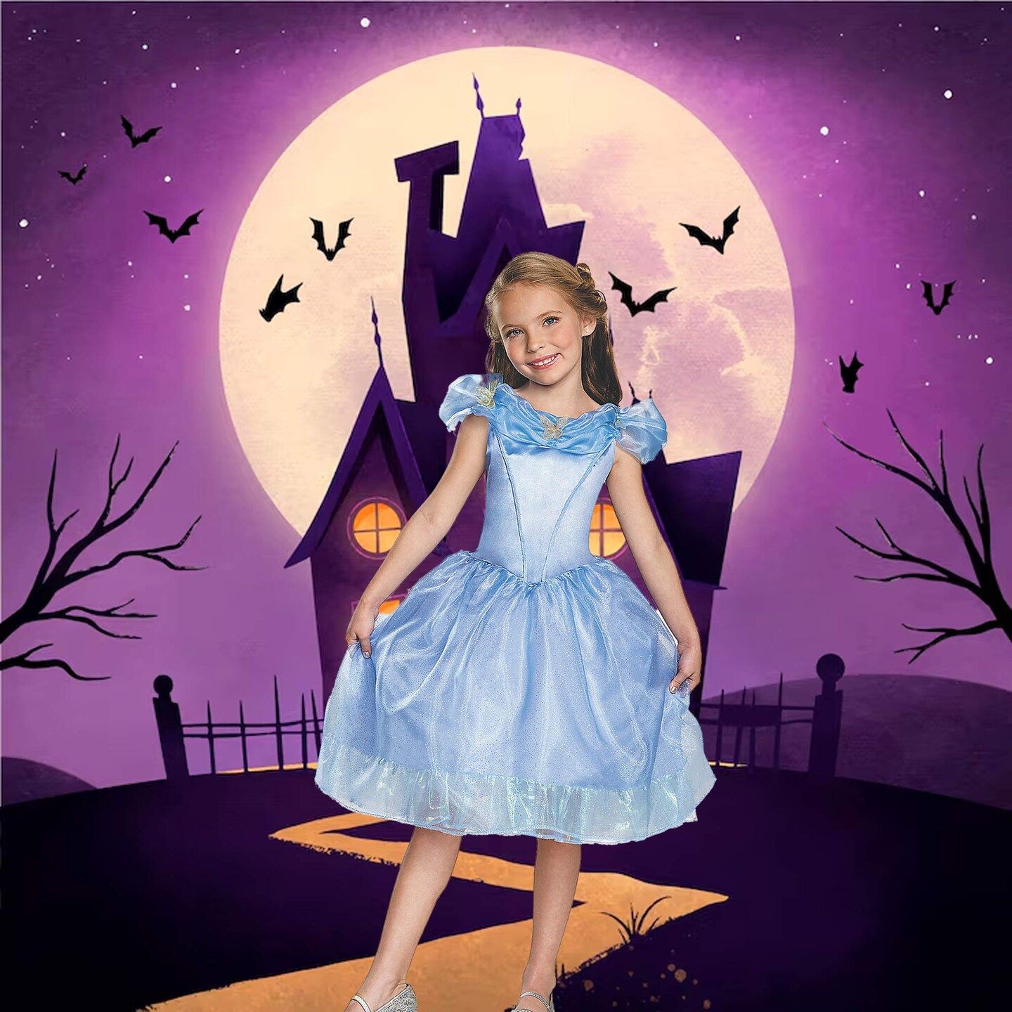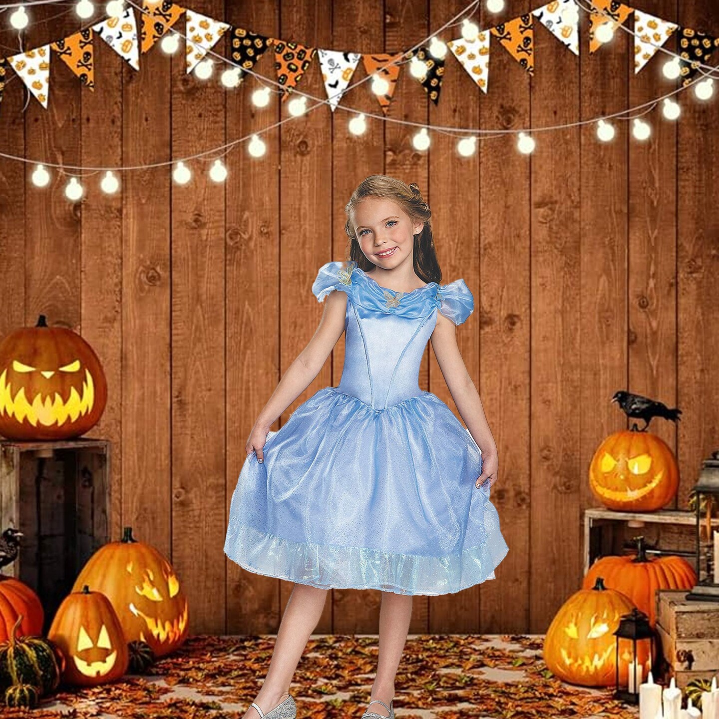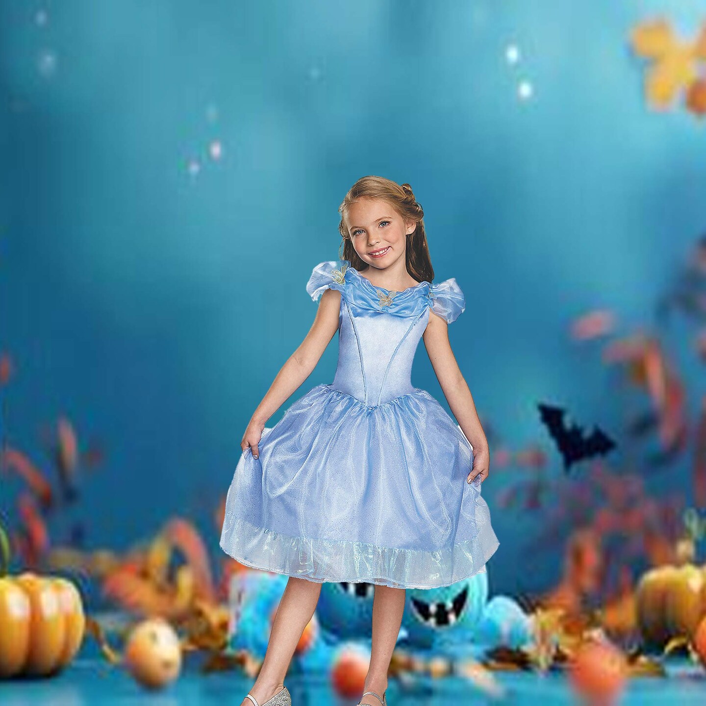 Girls Cinderella Costume Magical Blue Party Dress