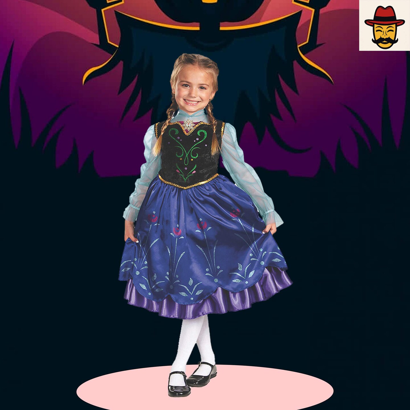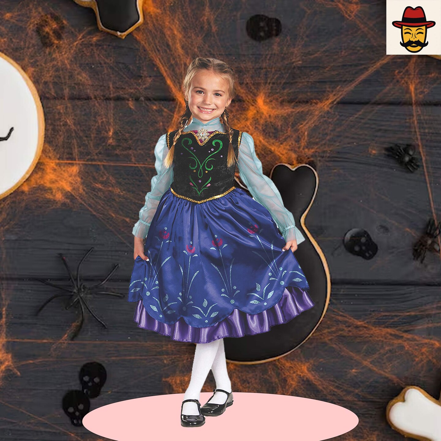 Girls Frozen Anna Costume Blue Purple Black Dress with Velvet Bodice and Floral Skirt