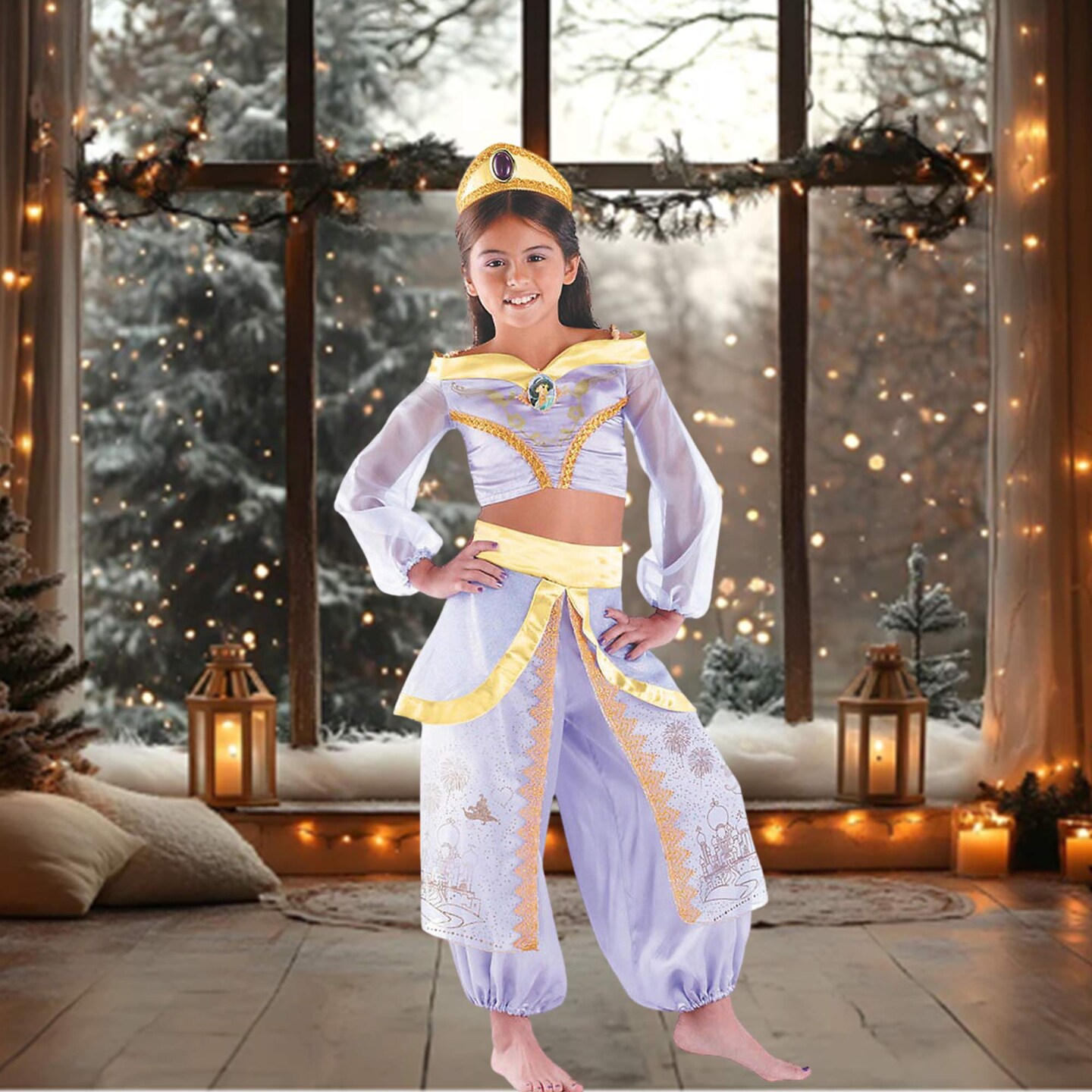 Girls Jasmine Costume Toddler Princess Outfit, With Glittered Pants And Headpiece