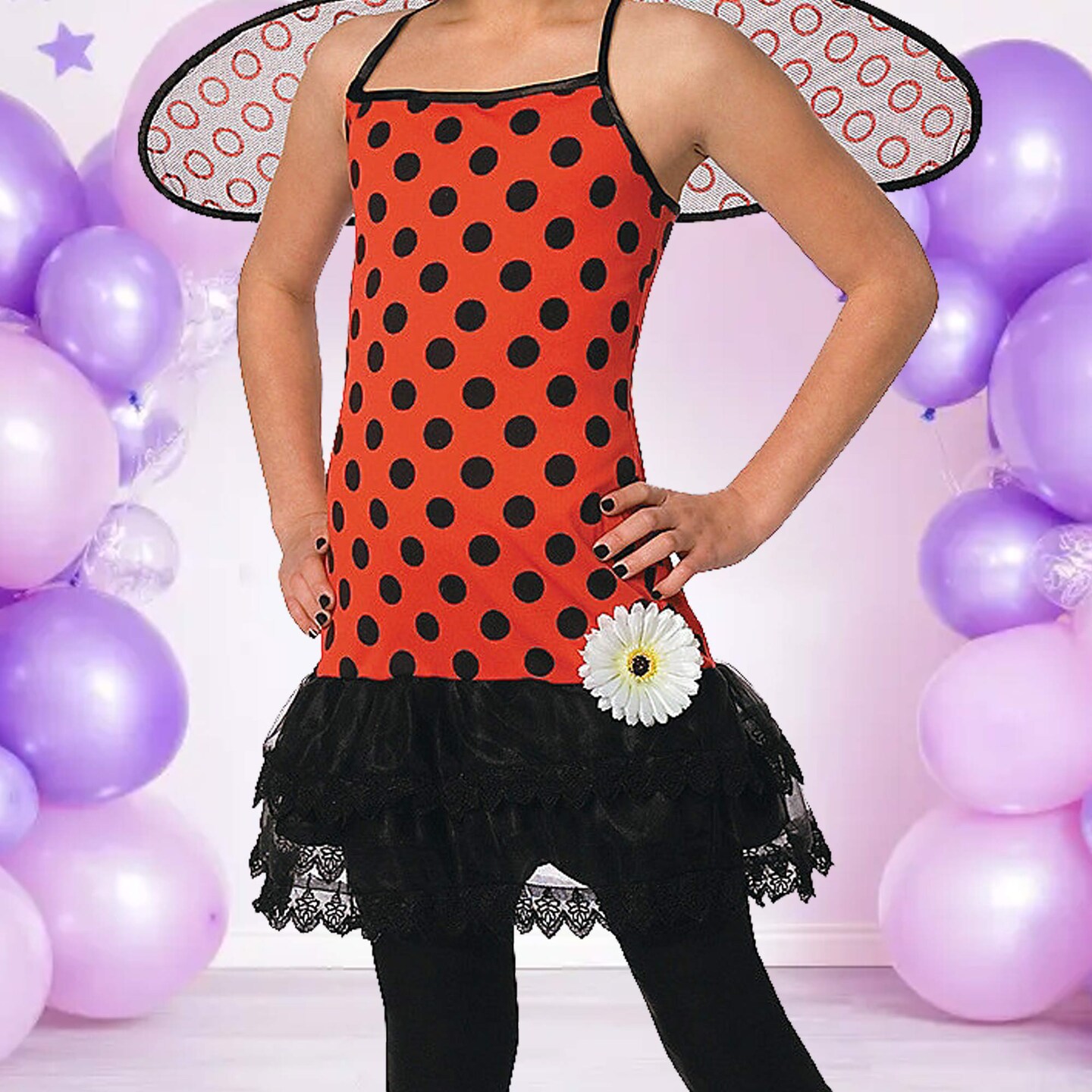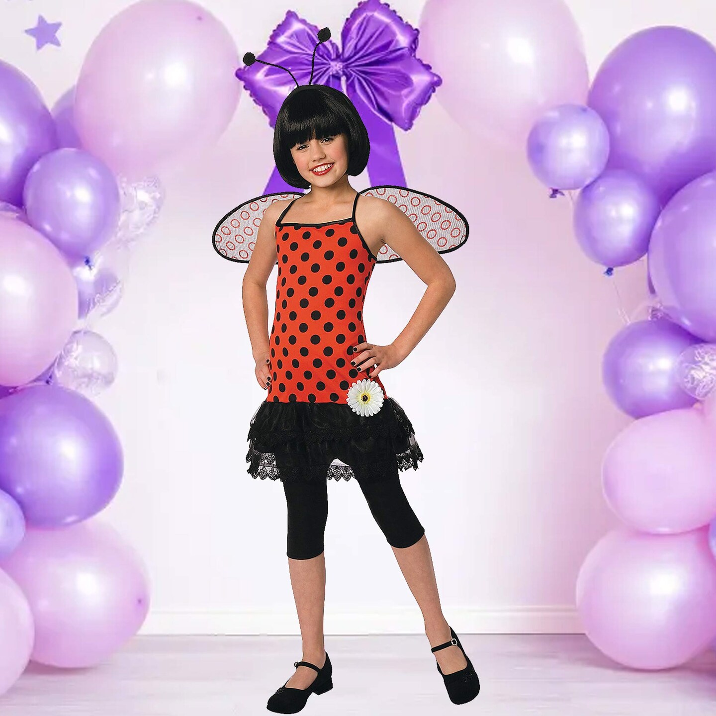 Girls Love Bug Costume Dress with Wings and Antenna Headband