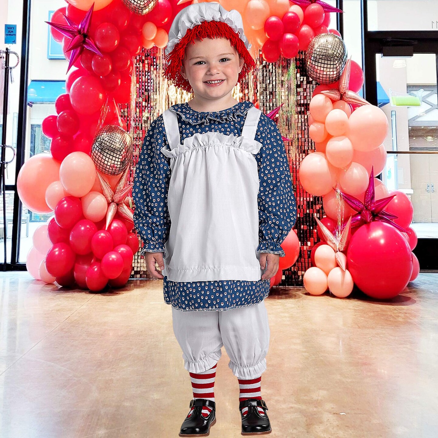 Girls Raggedy Ann Costume Dress with Apron Bloomers and Wig
