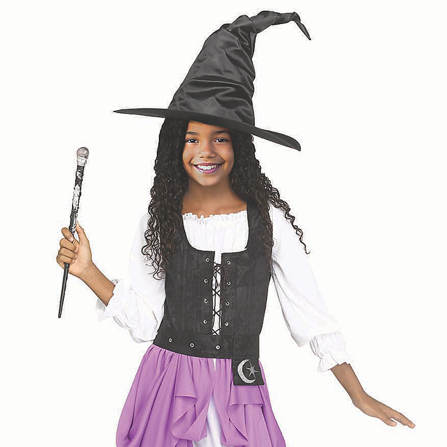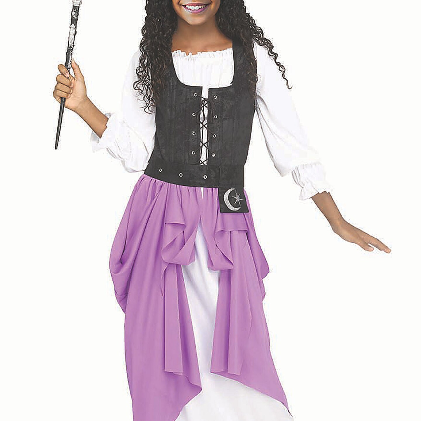 Girls Renaissance Witch Costume Black Purple White Gown with Lace Vest
