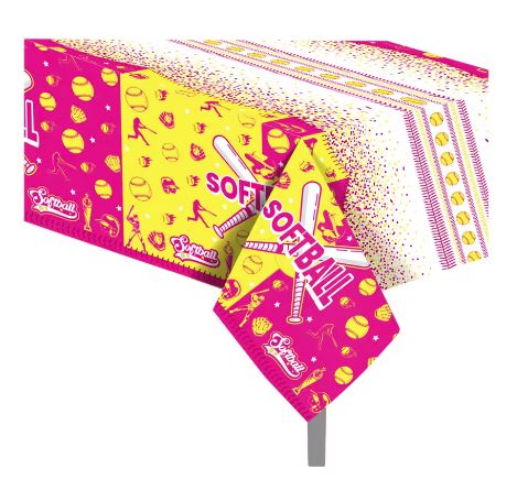 Girl’s Softball Party Plastic Table Cover – 1 Table Cover