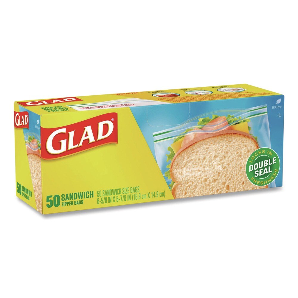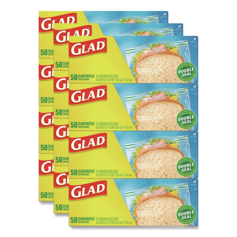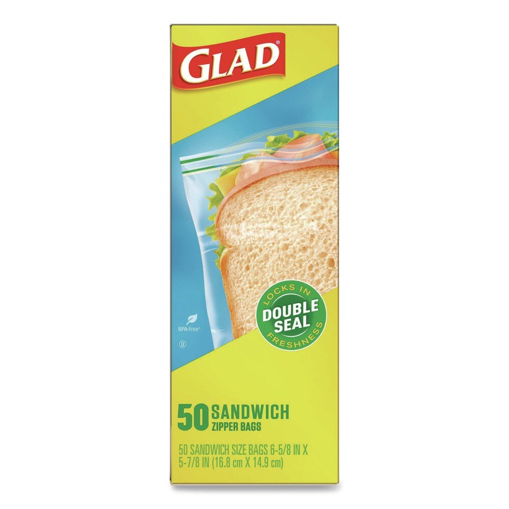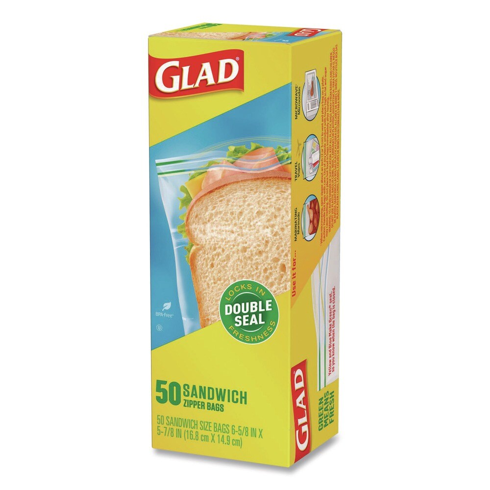 Glad 6.63 in. x 5.88 in. Zipper Food Storage Sandwich Bags - Clear (12 Boxes/Carton)