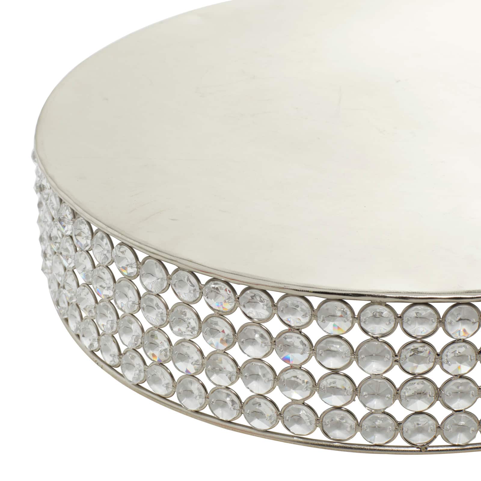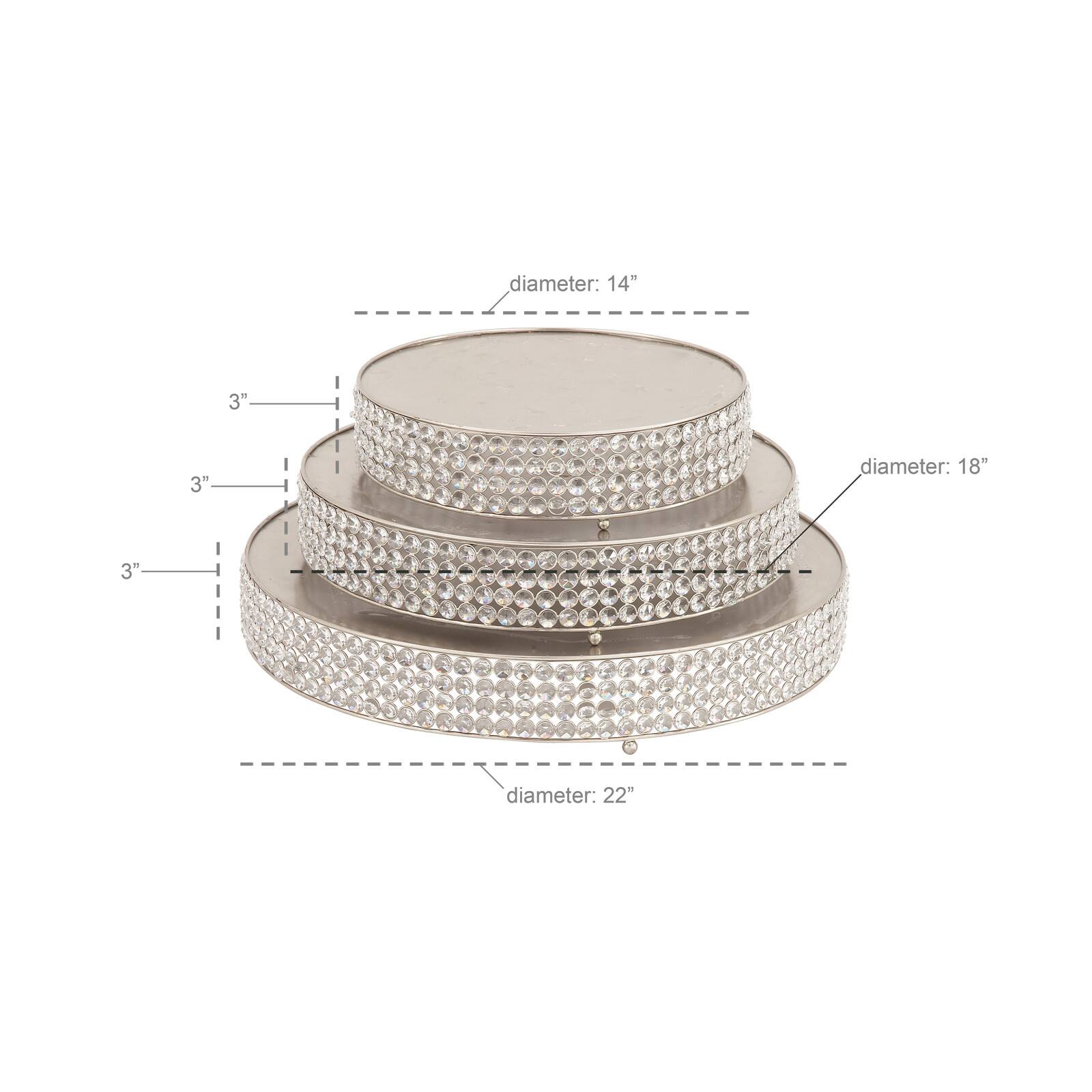 Glam Round Silver Metal and Glass Bead Cake Stand, Set of 3, 3"
