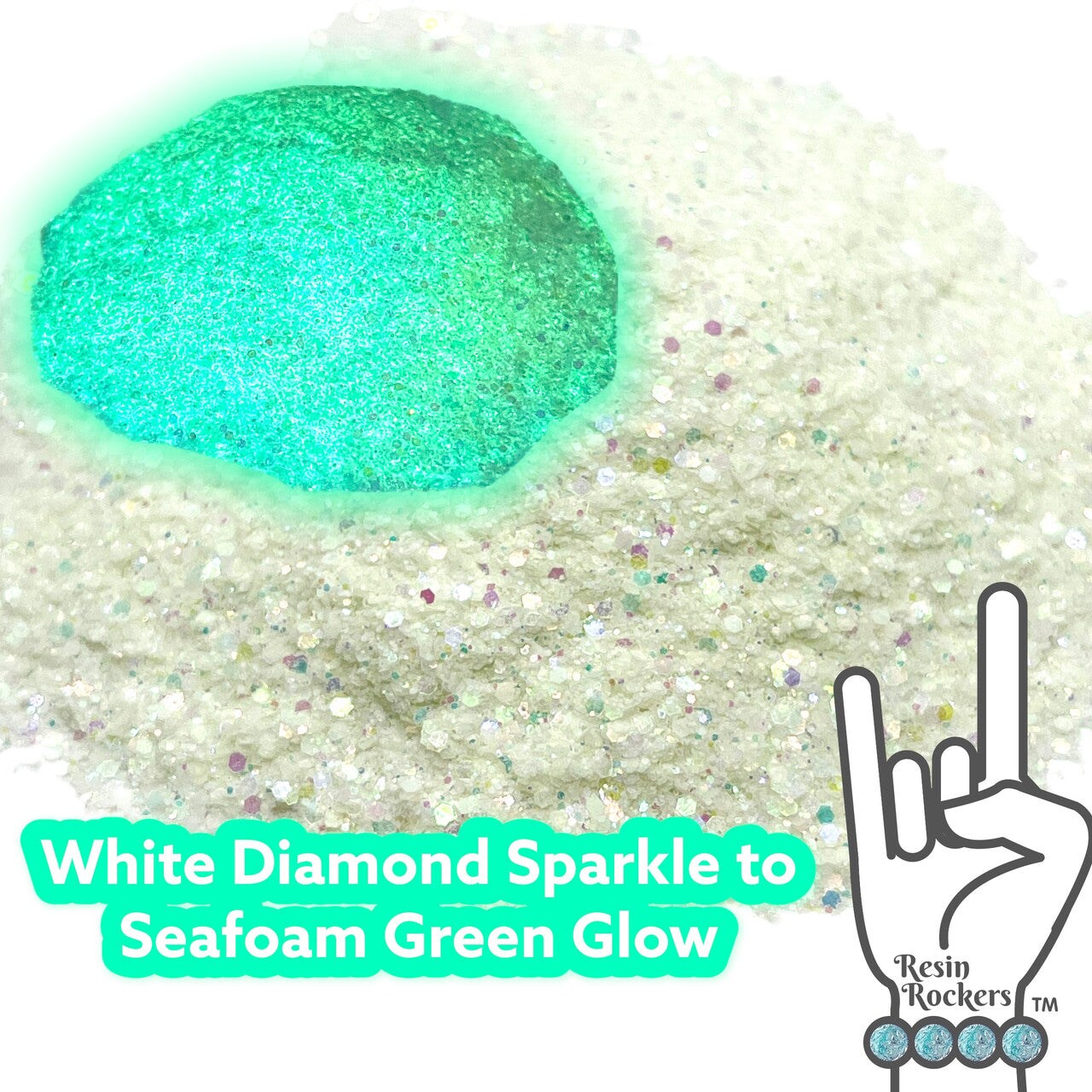 Glamour and White Diamond Sparkle to Seafoam Green Glow in the Dark Pixie for Poxy Color Changing Medium Chunky Glitter Mix