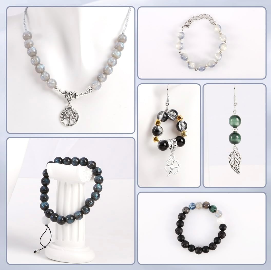 Glass Beads Jewelry Making Kit – 450pcs in 18 Colors with Lava, Stone & Spacer Beads | DIY Bracelet, Necklace & Accessory Supplies for Adults | Holiday Craft Gift