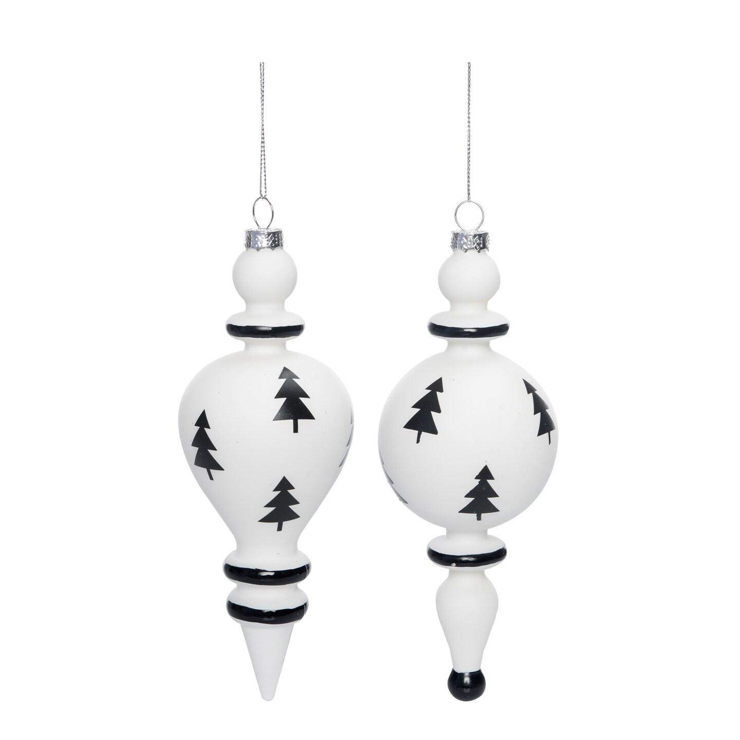 Glass Black and White Tree Ornament Set of Two Christmas Decor