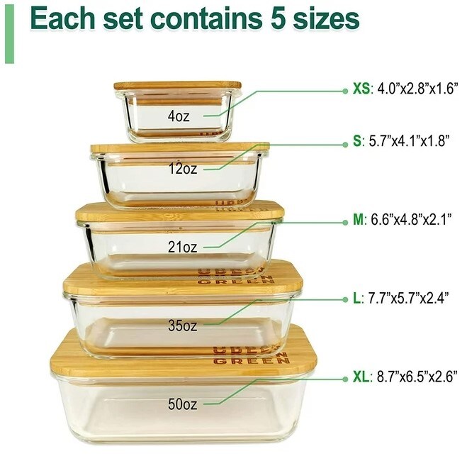 Glass Containers with Bamboo Lids Urban Green, Meal Prep Glass Containers, Glass Food storage Containers, 5 Pack, Pantry & Kitchen Glass Organizer, Lunch glass container, Microwave Oven Freezer Safe
