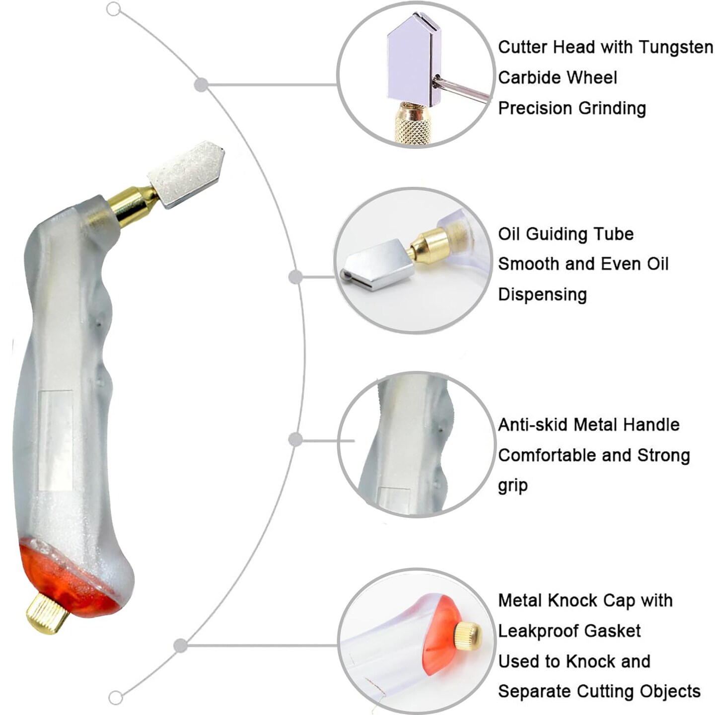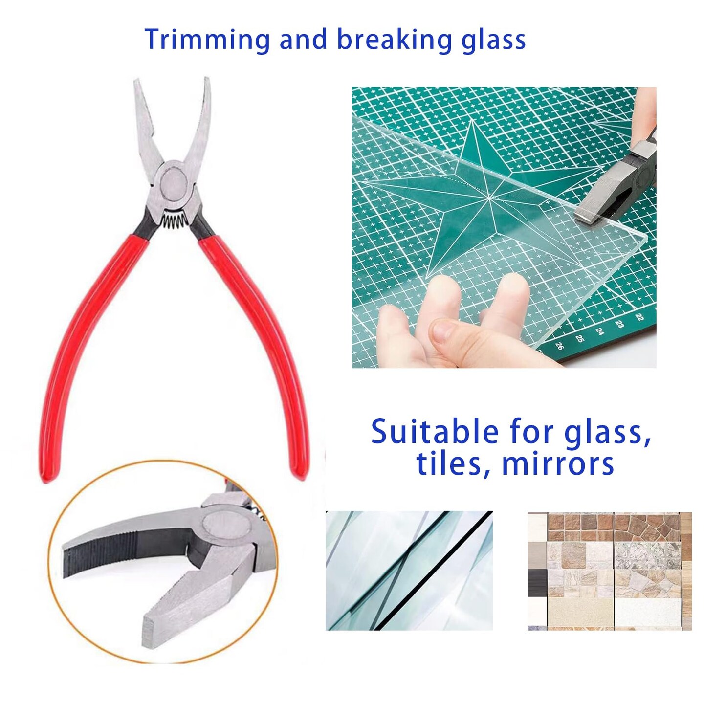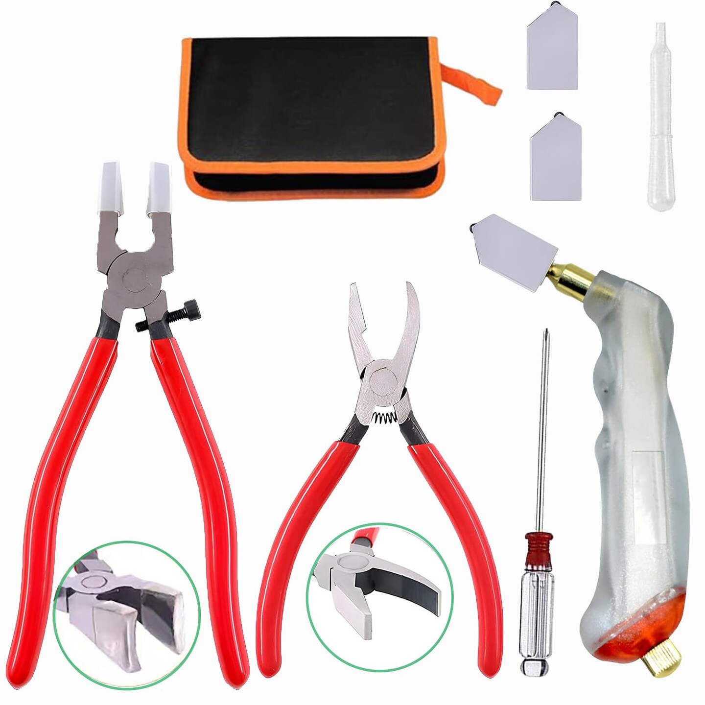Glass Cutting Tool Kit,Glass Cutters Tools Set with Oil Feed Glass Cutter Glass Running Pliers Breaker Pliers, Glass Cutting for Stained Glass Mosaic Tiles Mirrors,Zipper Package