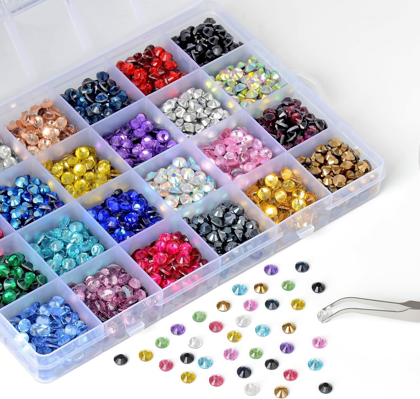 Glass Hotfix Rhinestones Bulk SS30 2880pcs 24 Colors Hotfix Crystal Flatback Rhinestones for Crafts Clothes with Tweezers and Wax Pencil Kit