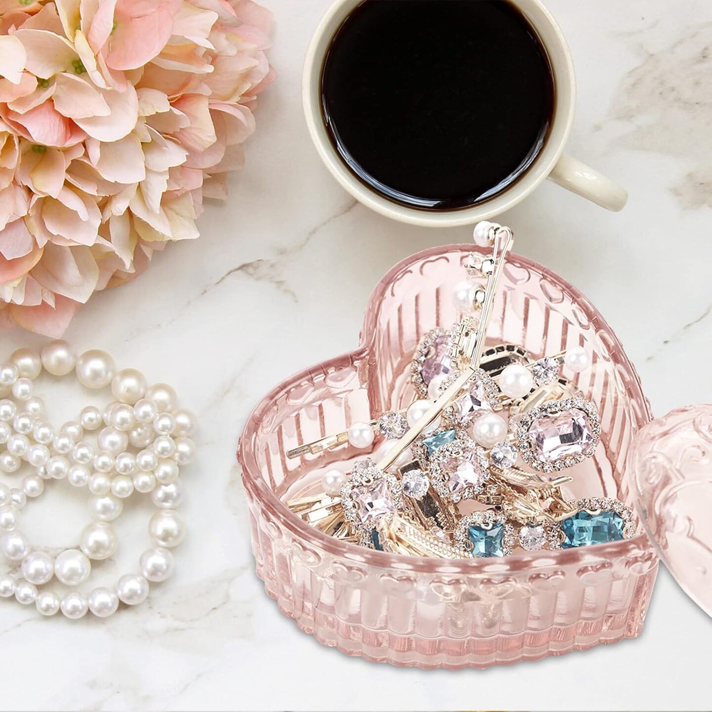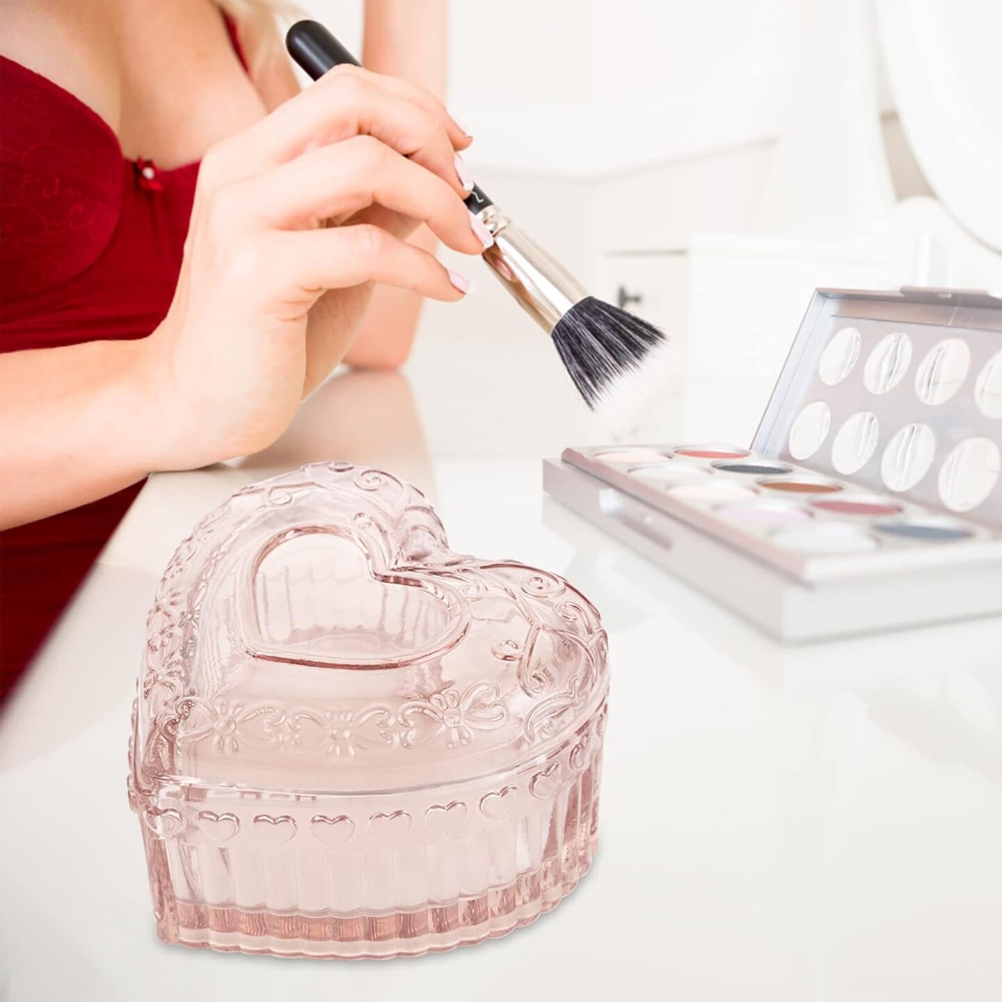 Glass Jewelry Box Heart Shape Cute Box for Storage Ring Earring Trinket Vintage Jewelry Organizer Decorative Gift for Women Girls-GRB003-Pink
