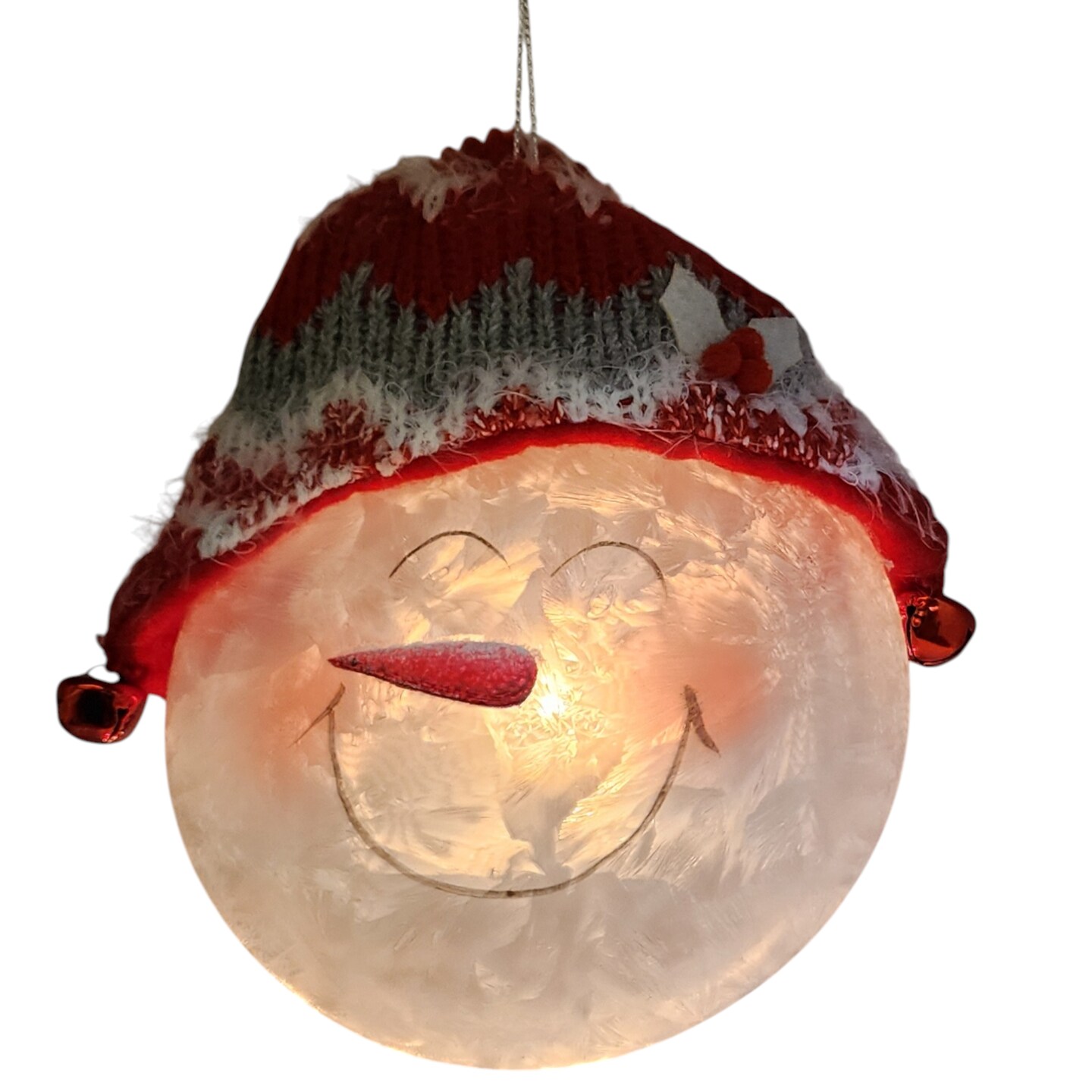Glass "Lightable" Snowman Ornament - Jolly Snow Hat