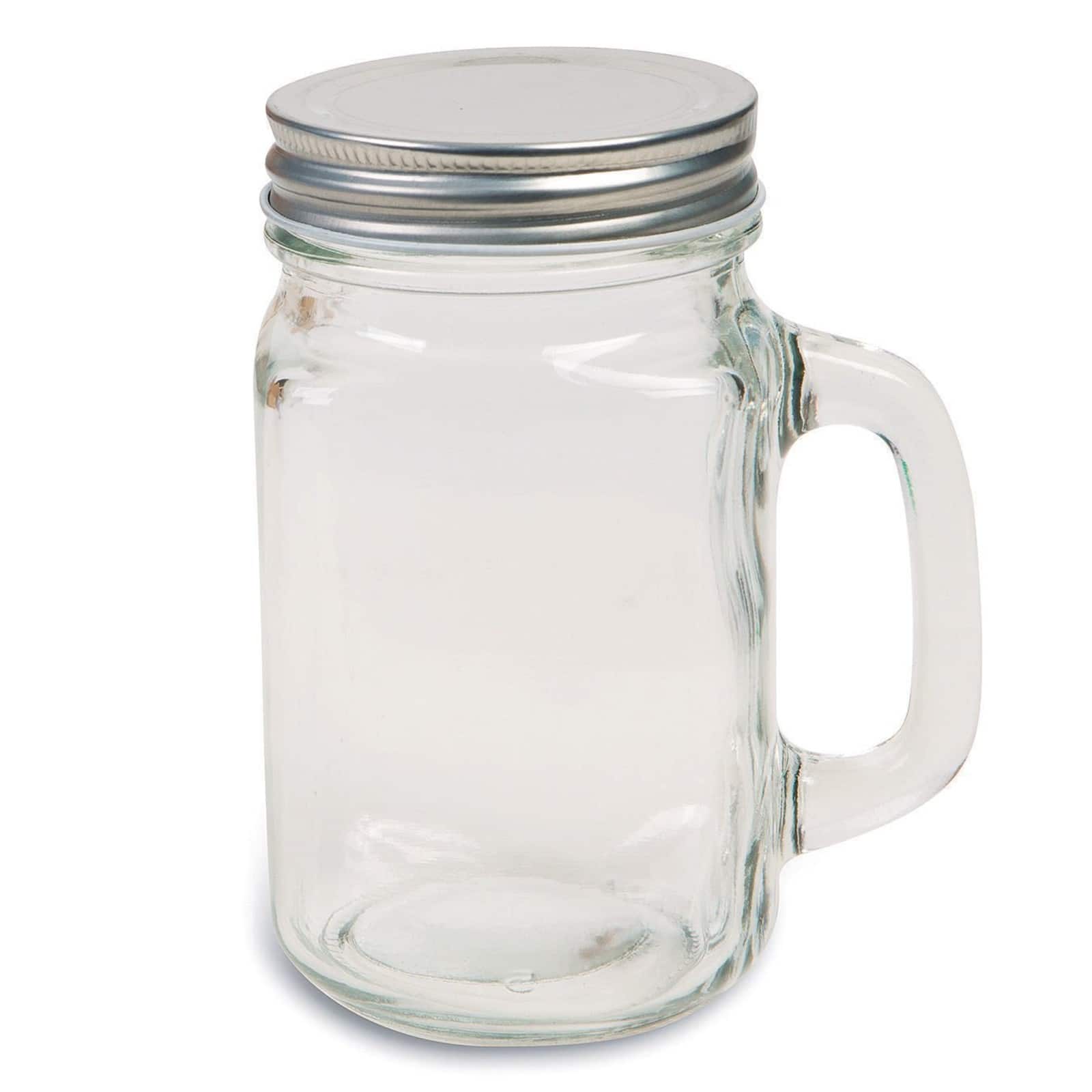 Glass Mason Jar With Handle & Lid, 16oz., 12ct.