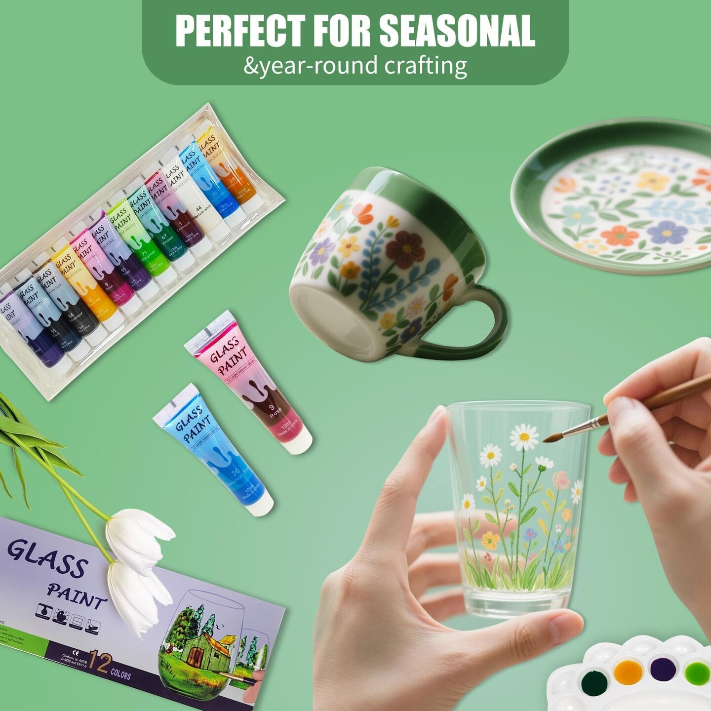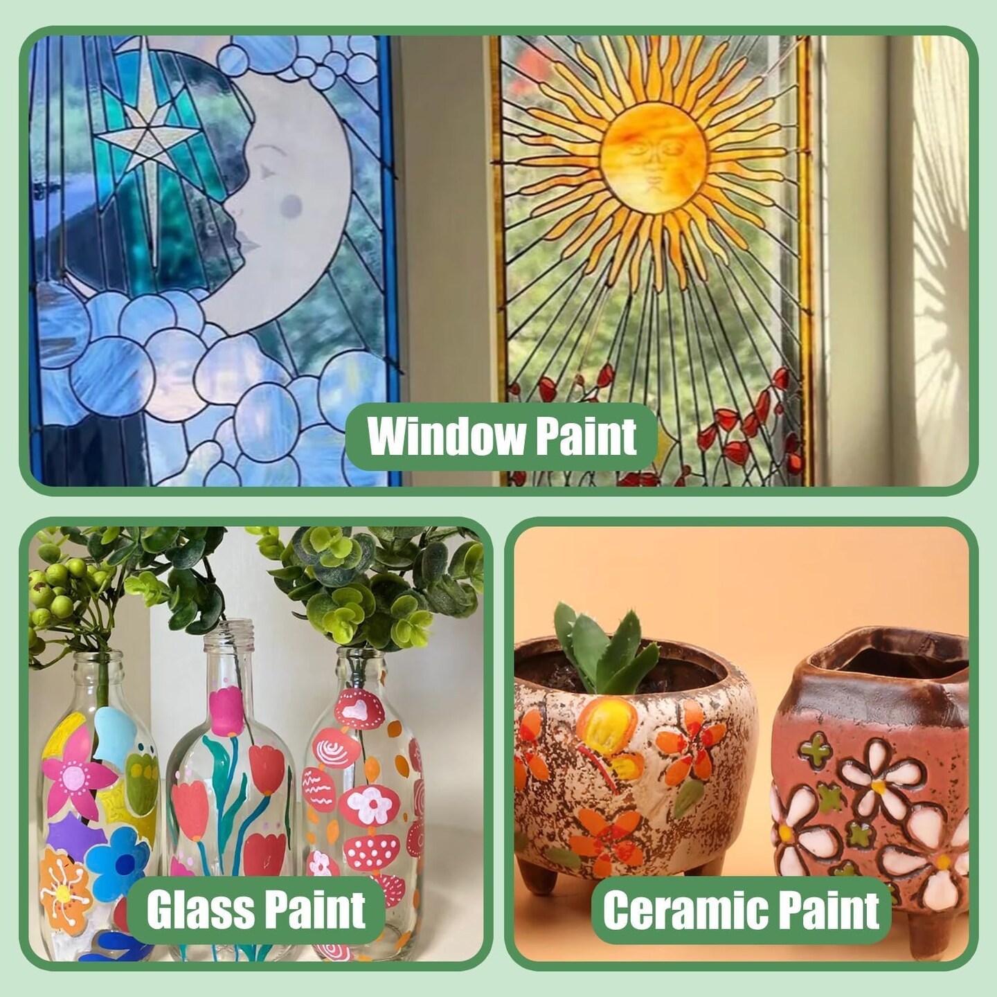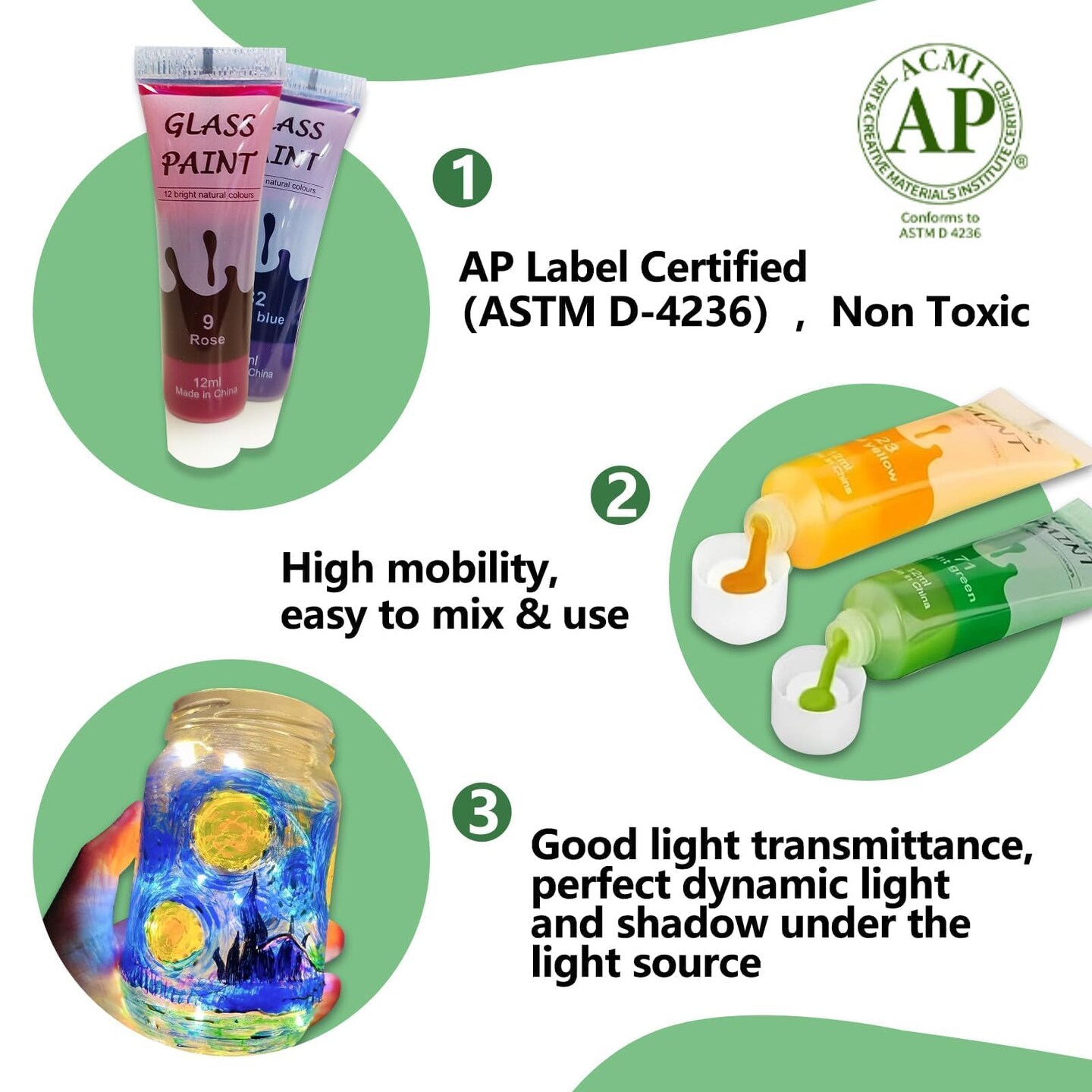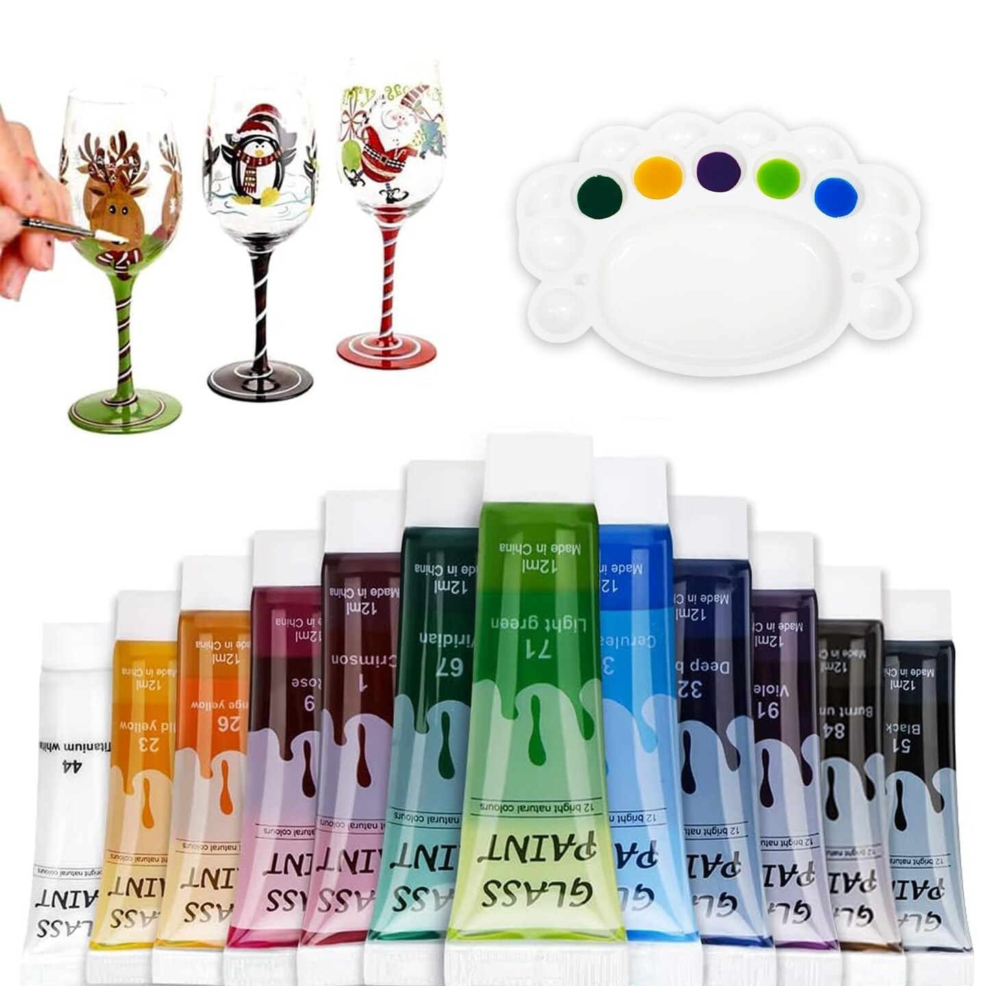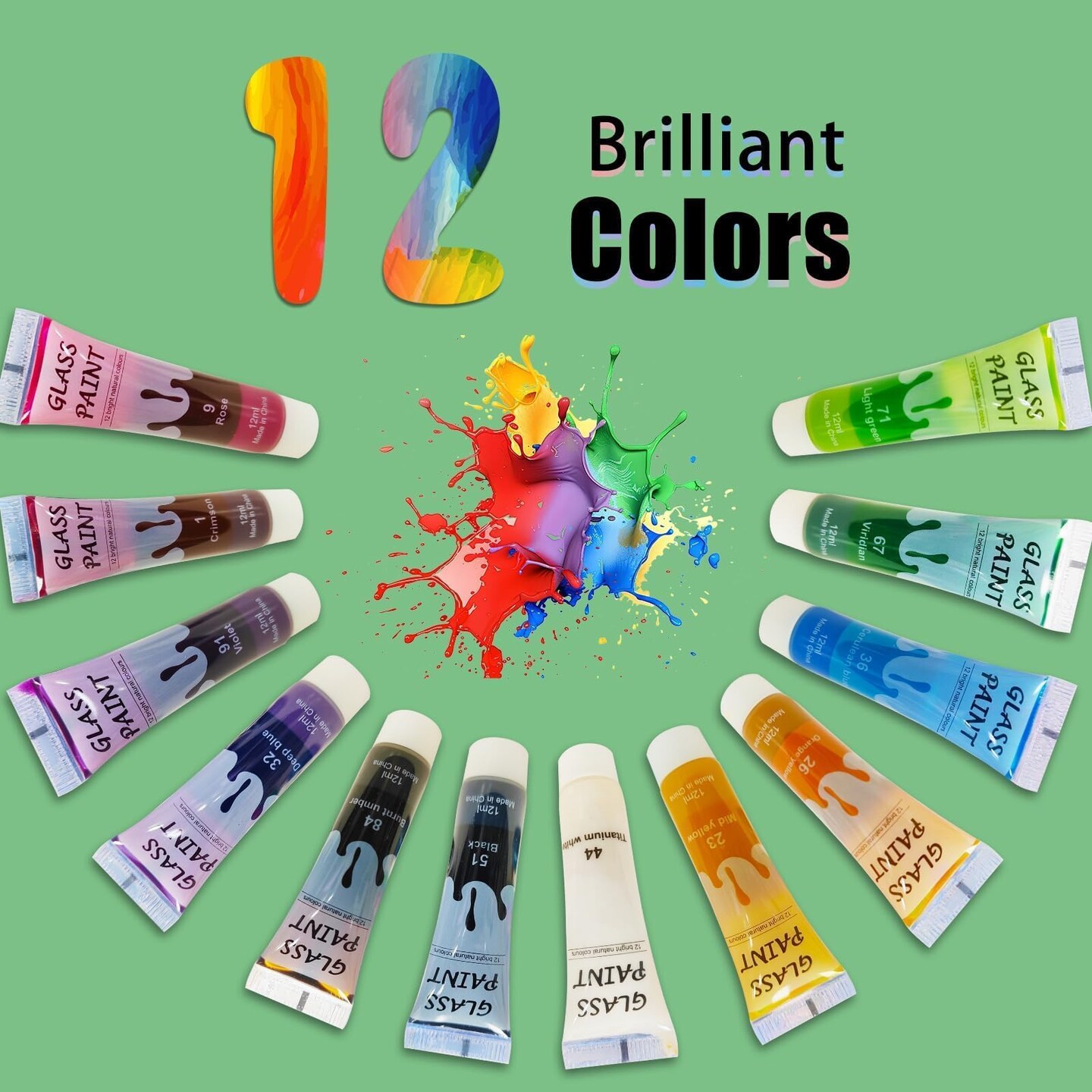 Glass Paint Stained Transparent Glass Window Paint Set Great for Glass Painting Wine Glasses Light Bulbs Ceramic Non-Toxic Waterproof Christmas Art Decor(12 Colors/4.9Oz)
