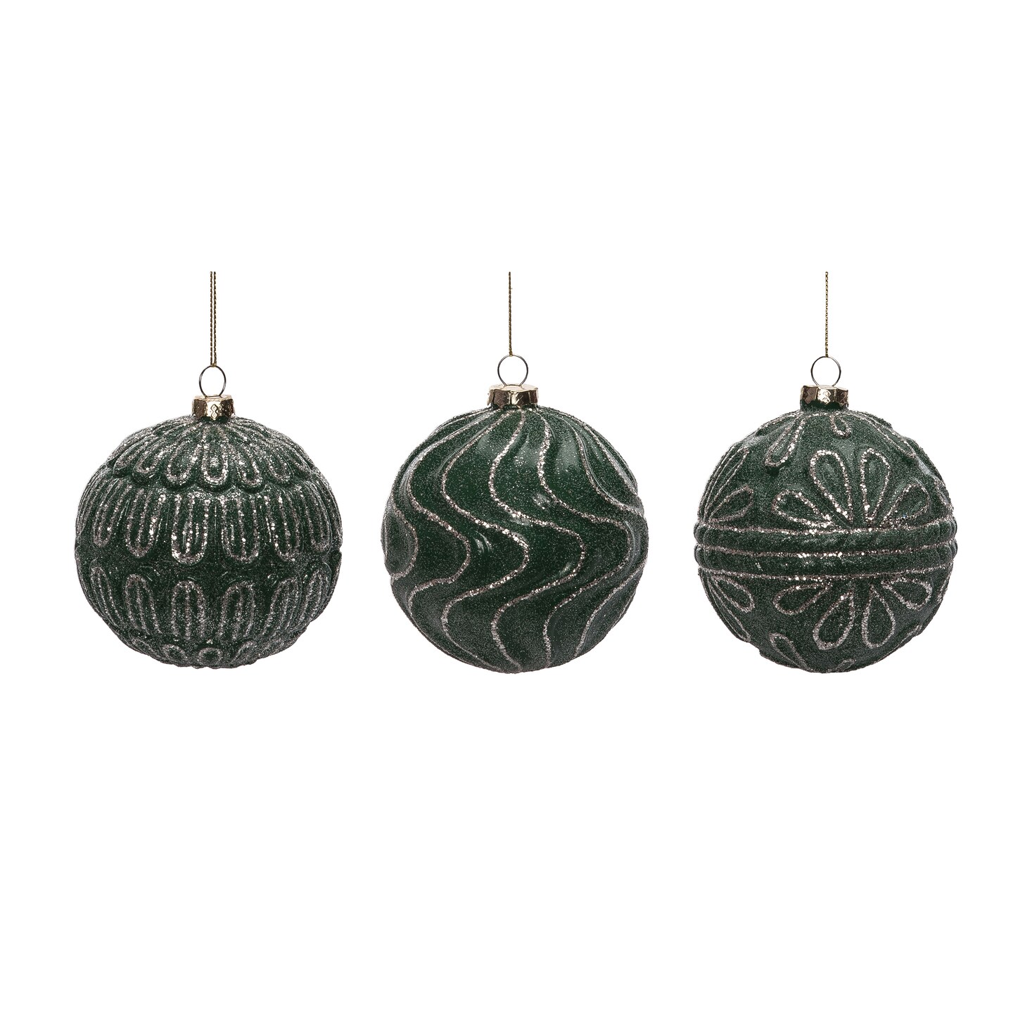 Glass Rustic Matte Green Ornament Set of Three Christmas Decor