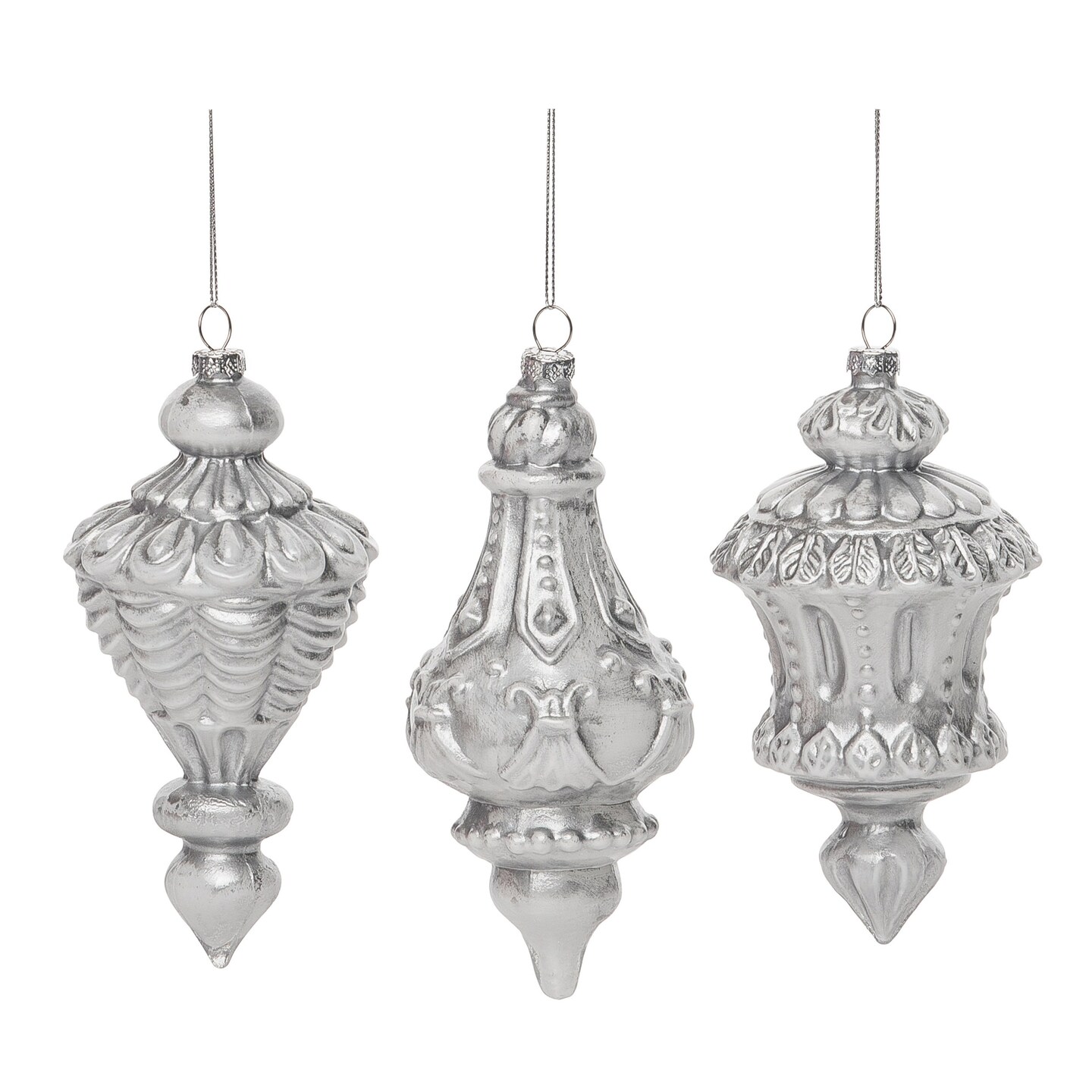 Glass Silver Christmas Ornament Set of 3