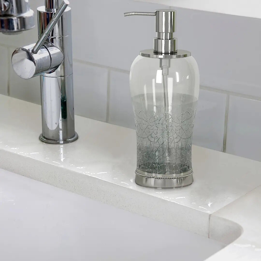 Glass Soap Dispenser Pump Bottle | Bathroom & Kitchen | Holds Soap, Lotion & Sanitizer | Crackle Glass