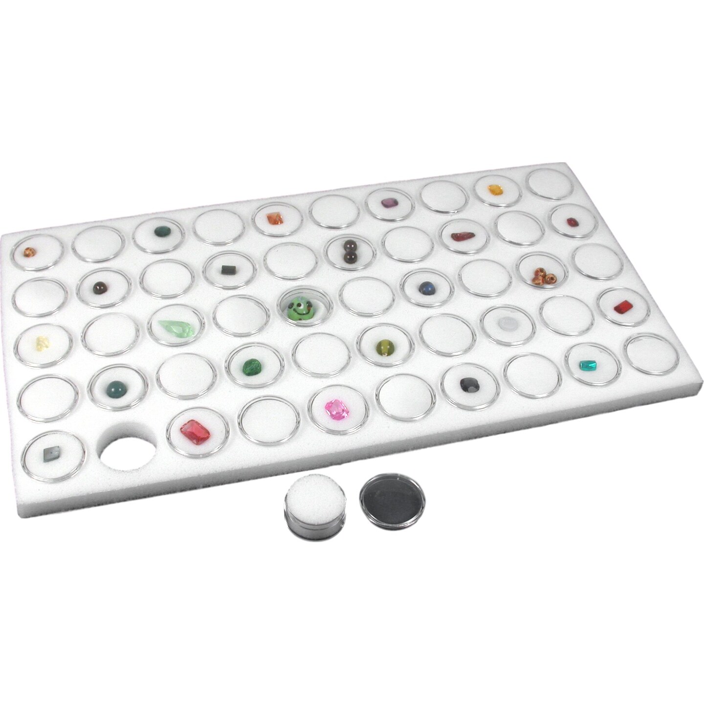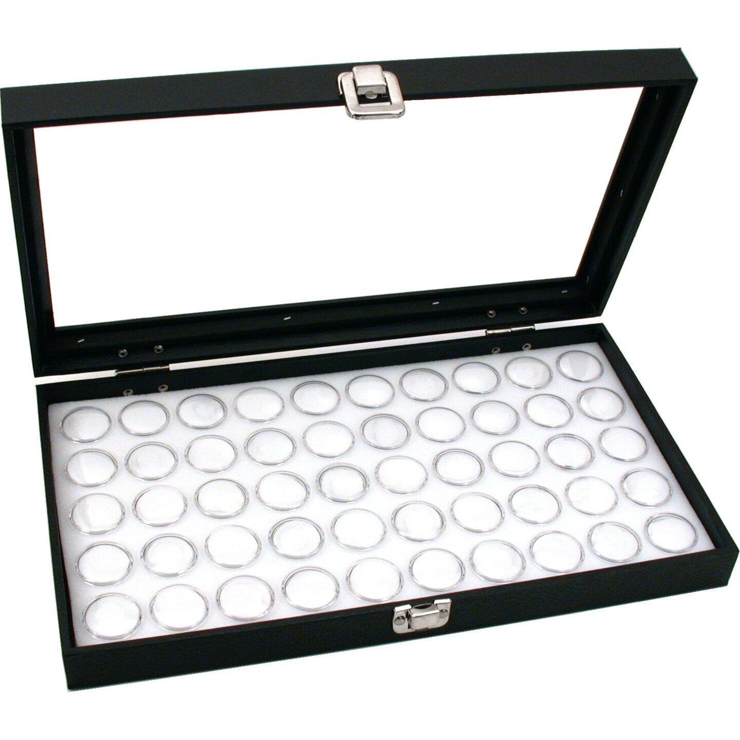 Glass Top Jewelry Display Case Box White 50 Gem Jars