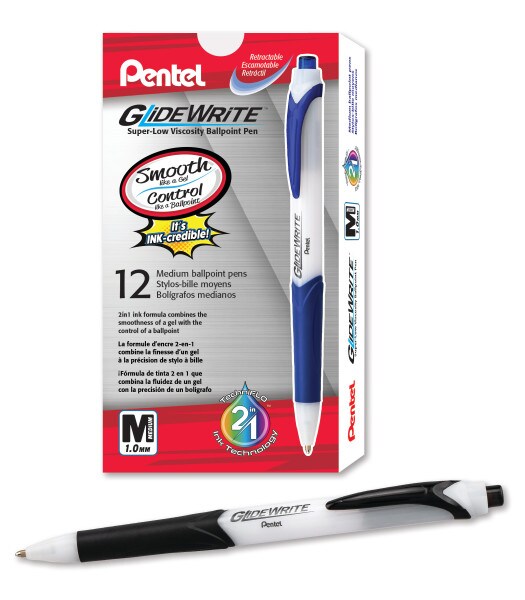 GlideWrite Ballpoint Pen with TechniFlo Ink, (1.0mm) Medium Line, Black