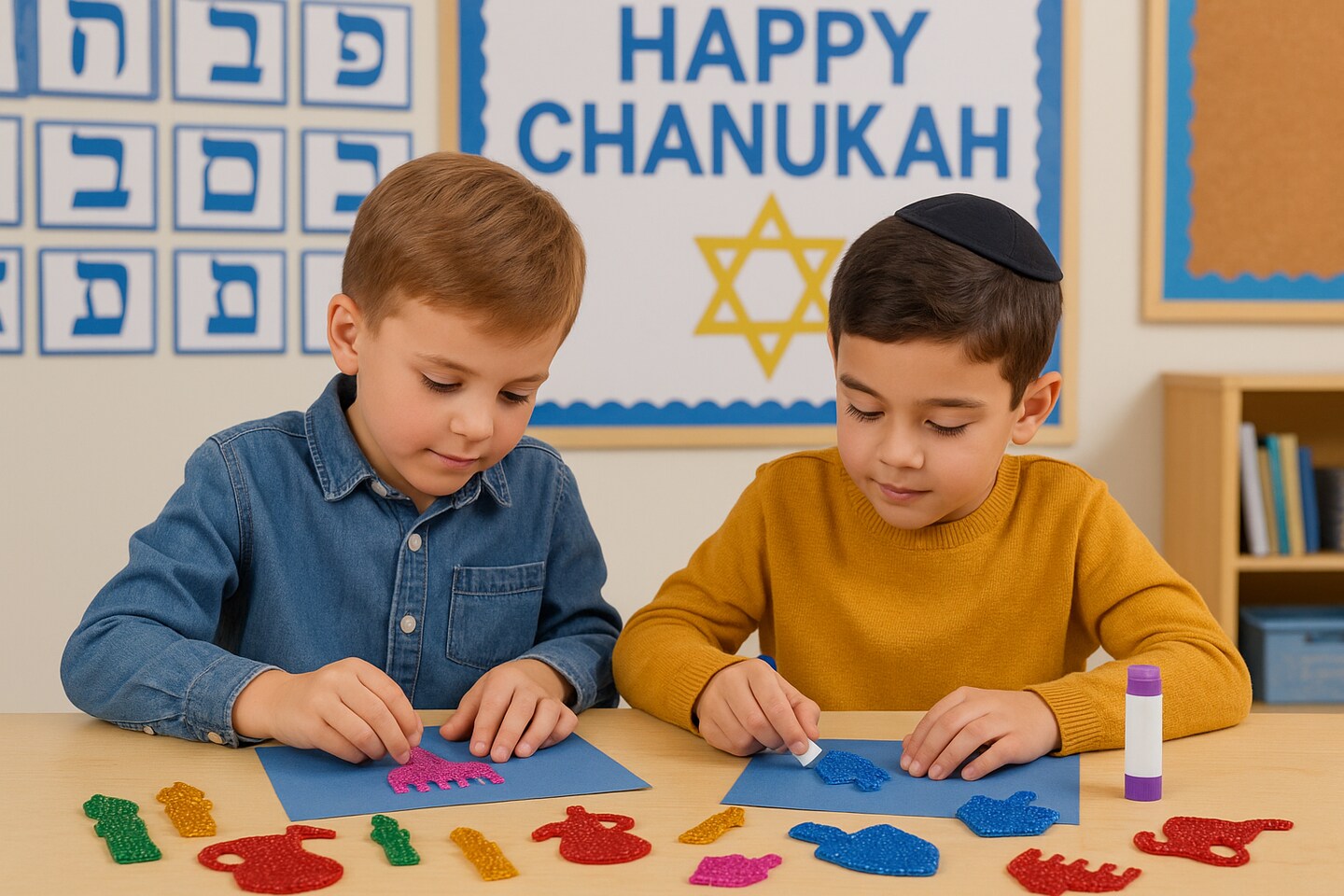 Glitter Chanukah Foam Shapes, 48/Pack – Sparkly Foam Cutouts for Jewish Holiday Crafts, Classroom & DIY Art