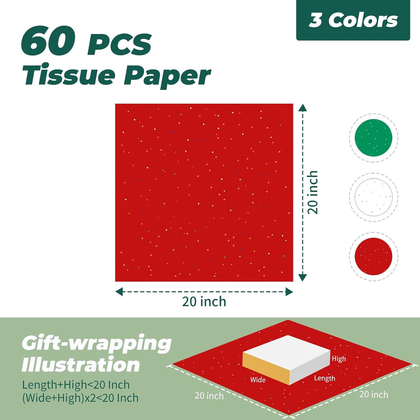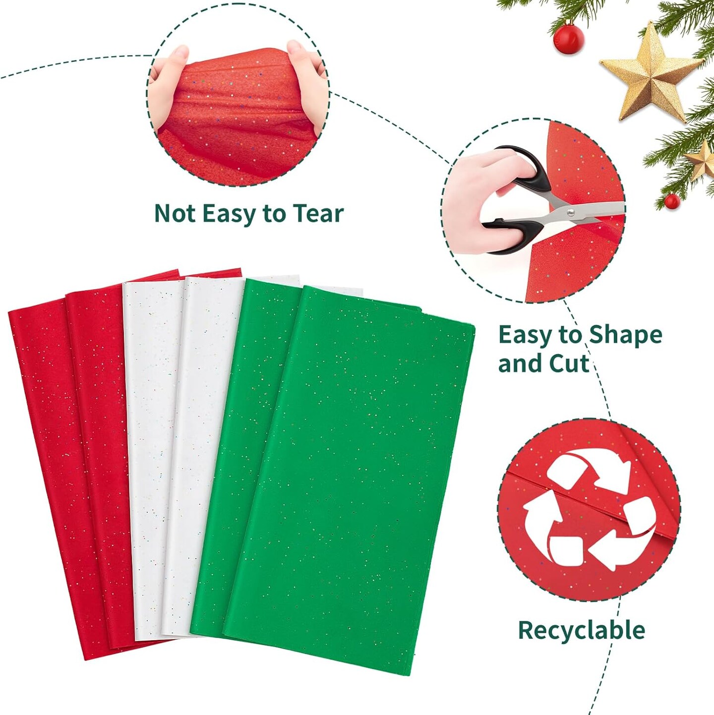 Glitter Christmas Tissue Paper for Gift Bags, 60 Sheets 20 x 20 Inches Christmas Wrapping Paper, Gift Wrapping Christmas Tissue Paper Sheets Bulk for Christmas, Birthday and Holiday Decor