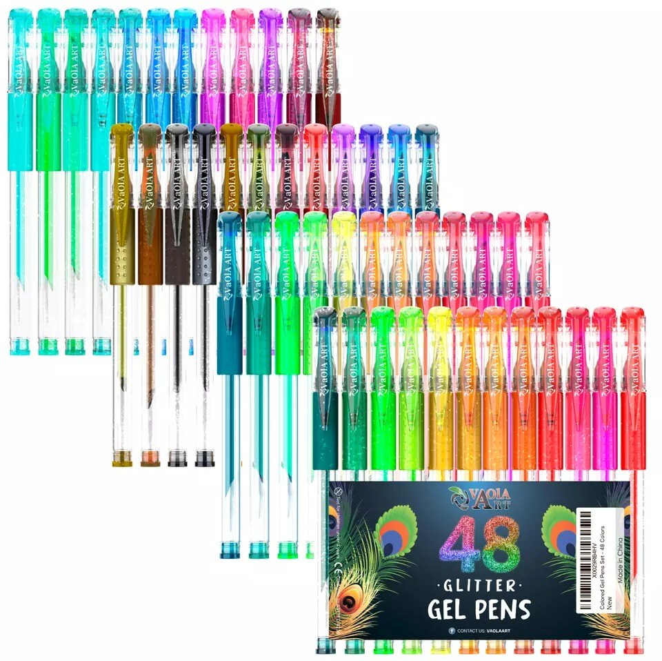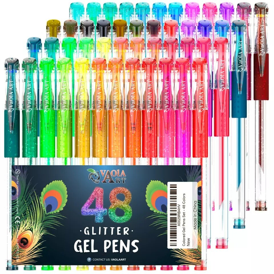 Glitter Gel Pens 48 Colors - Colored Pens for Adult Coloring - Book Pens for Wom
