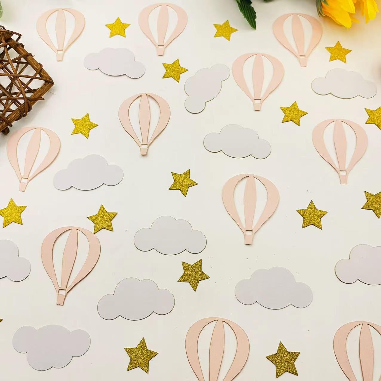 Glitter Gold Star White Clouds and Pink Hot Air Balloons Paper Confetti for Children Boys Girls Baby Shower Summer Birthday Wedding Theme Party Decorations, 100PCS