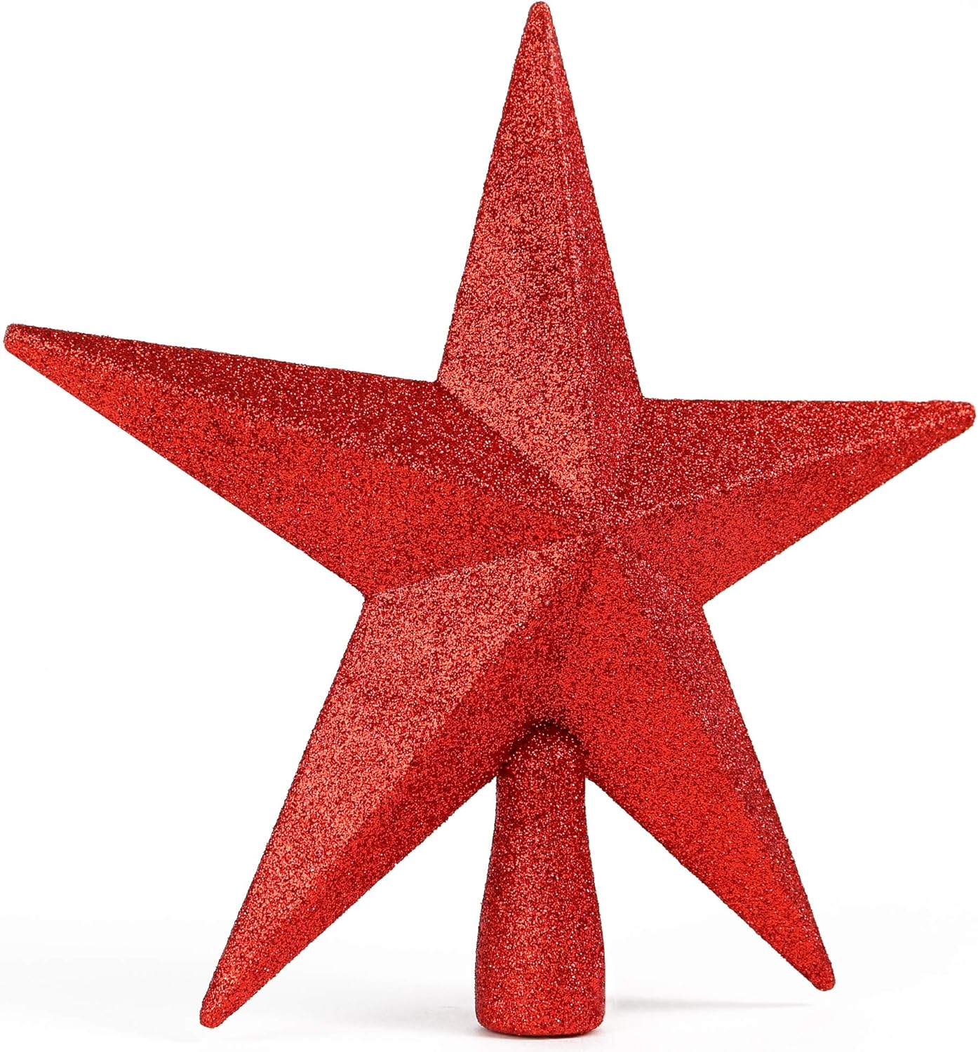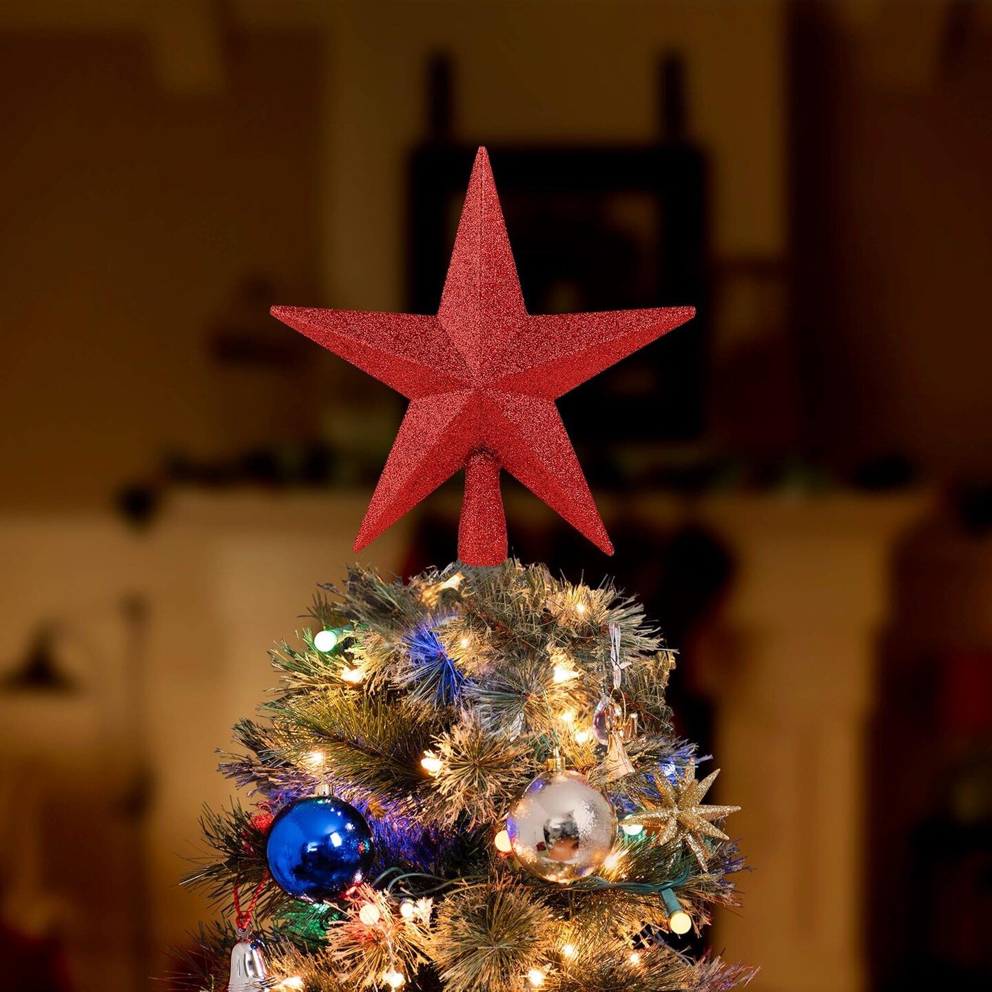 Glitter Star Tree Topper - Christmas Red Decorative Holiday