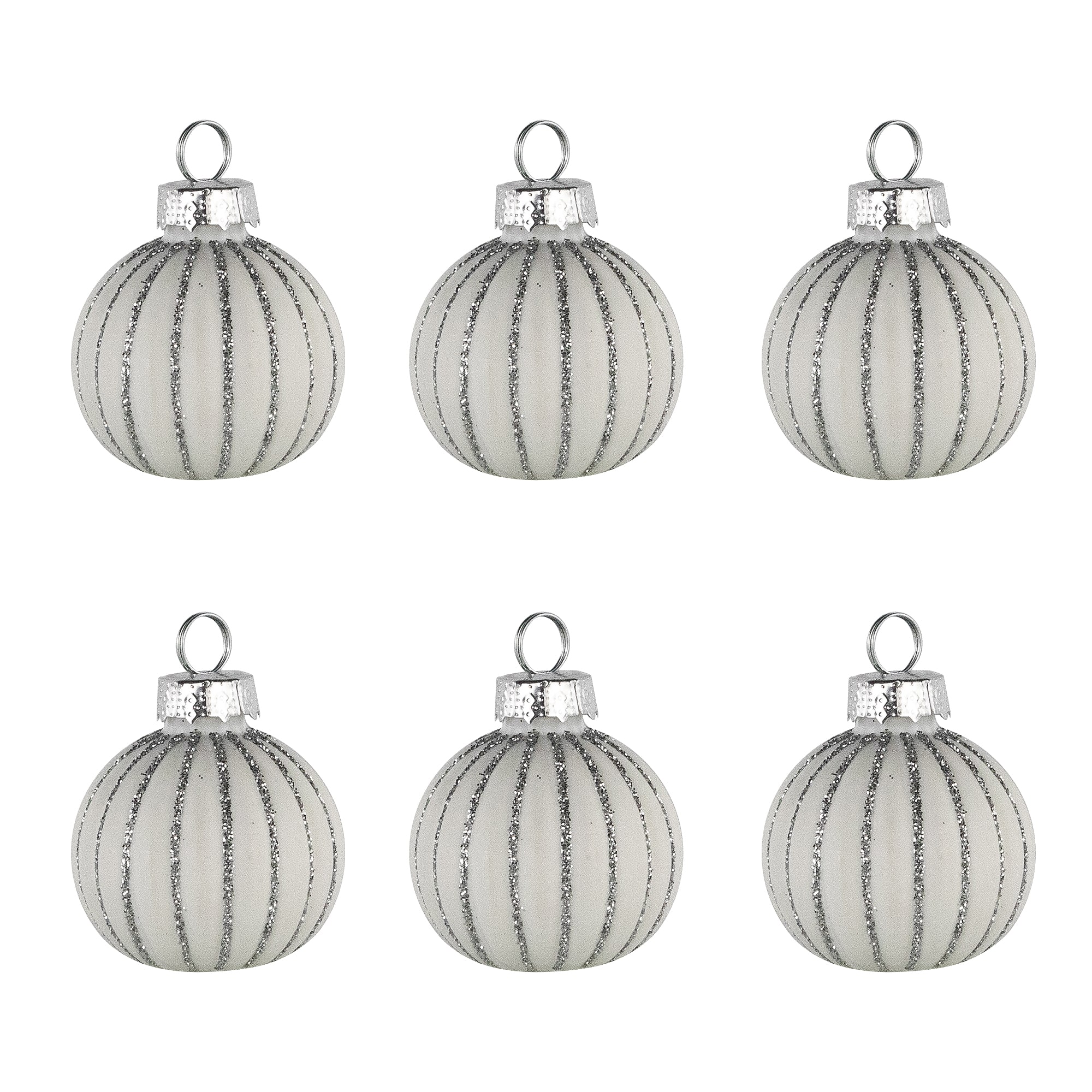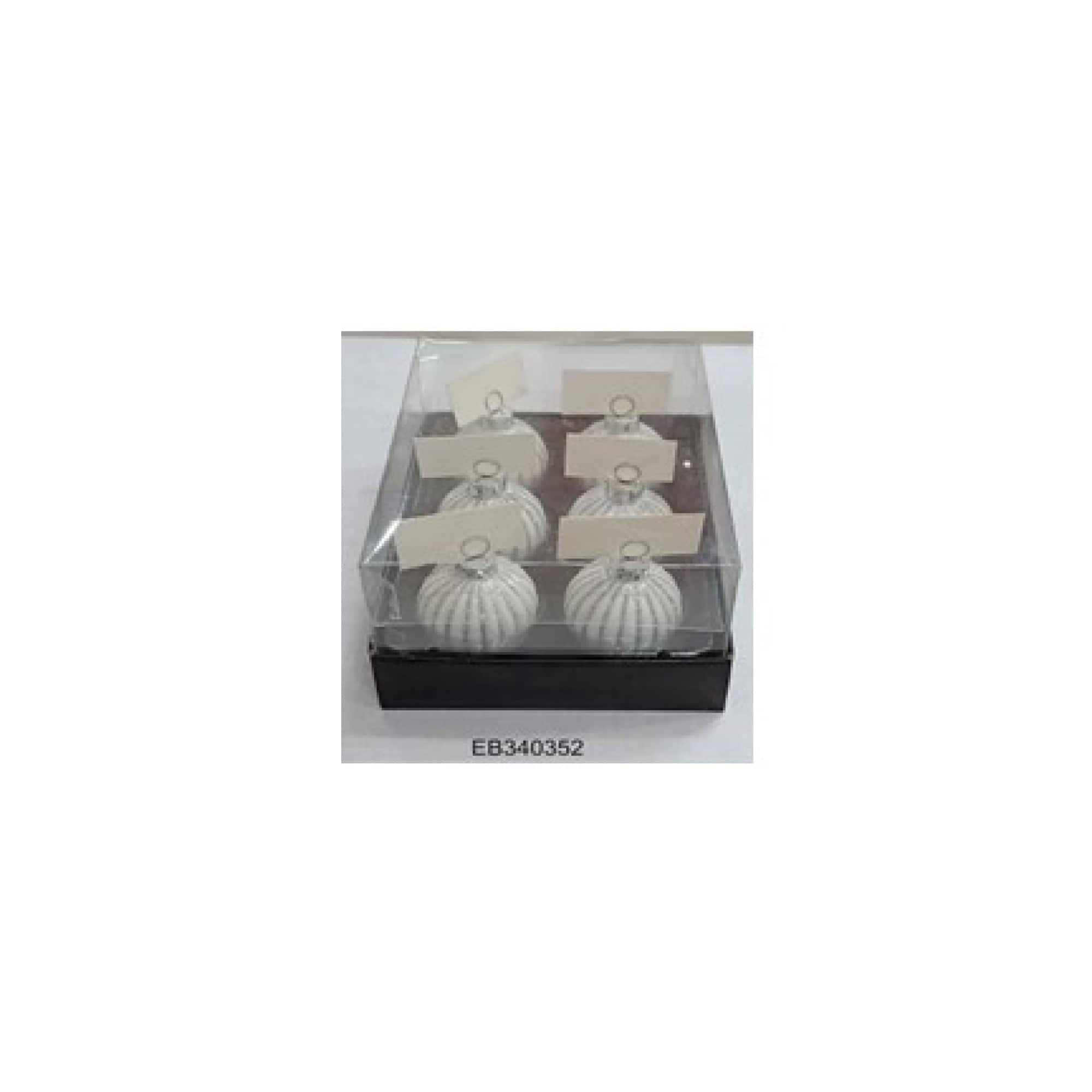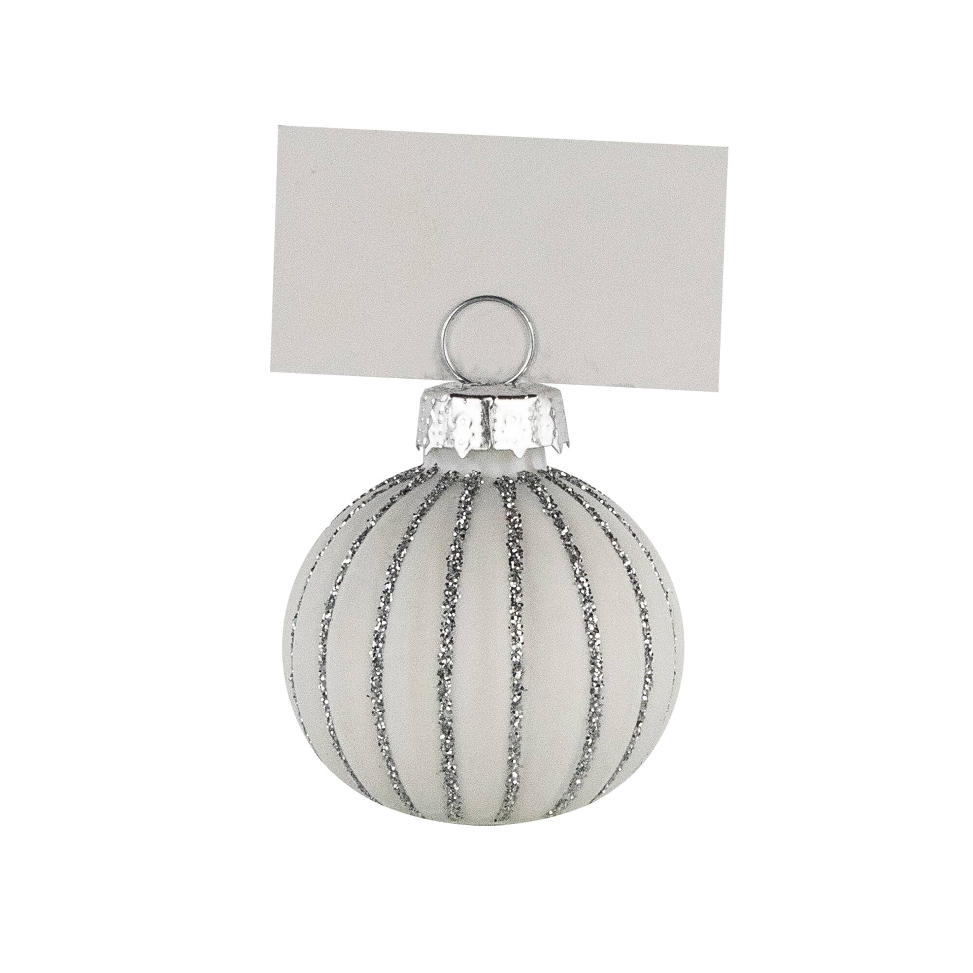 Glitter Striped White Glass Christmas Ornament with Place Card Holders, 6 ct.