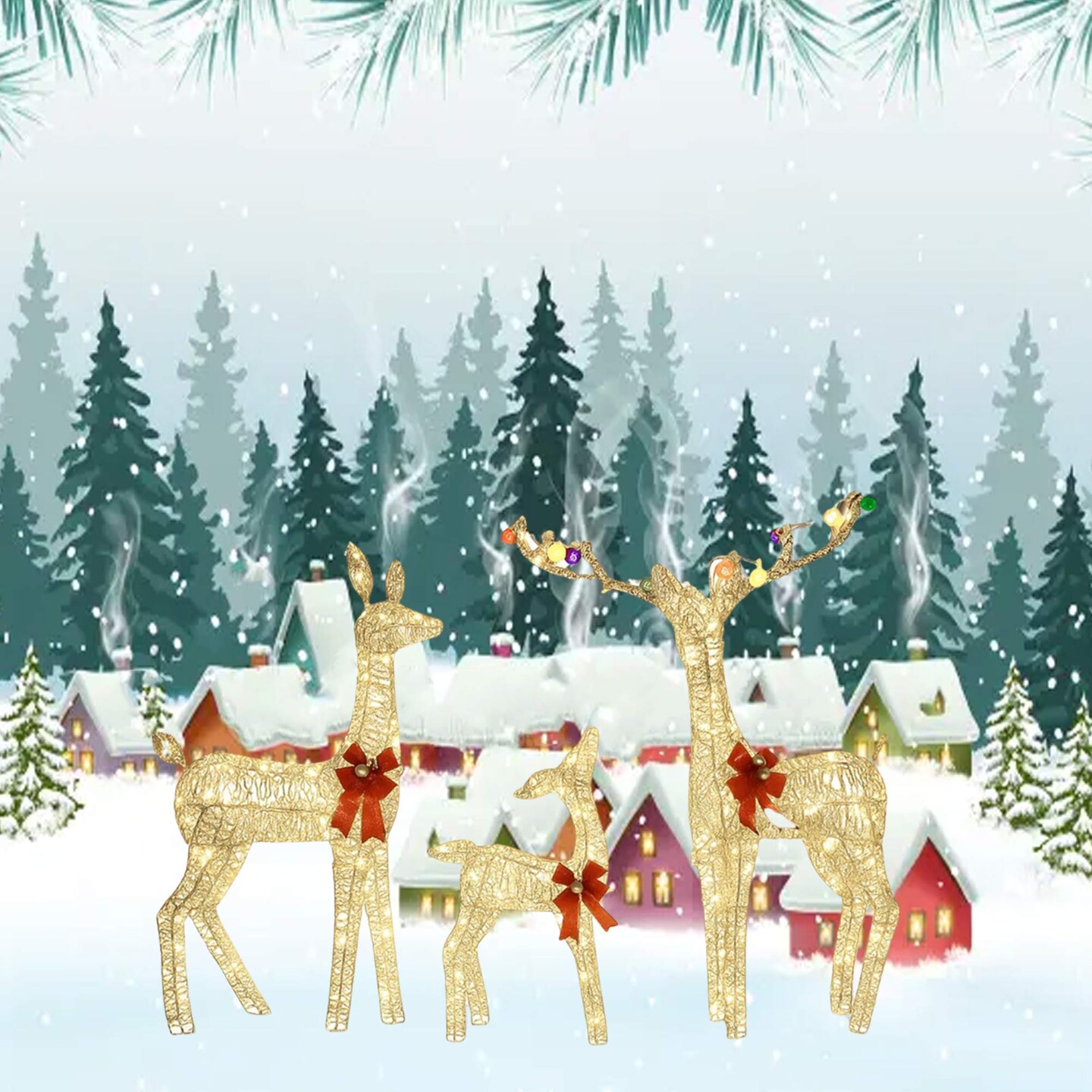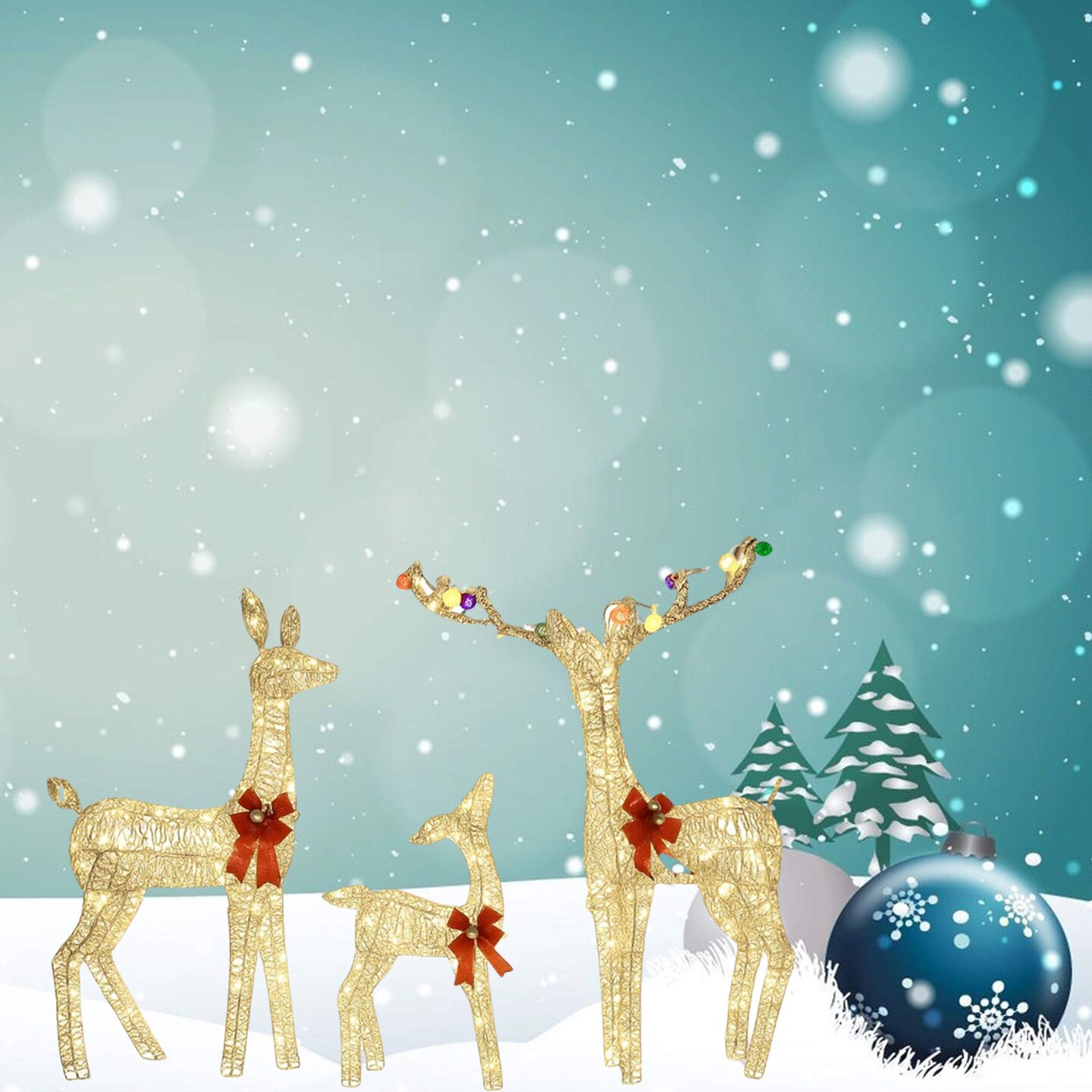 Glittering PVC Christmas Deer Set for Lawn and Garden Decorations 52"+46"+29"