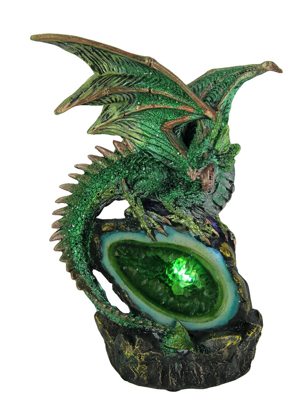 Glittery Green Wicked Dragon Color Changing LED Geode Statue