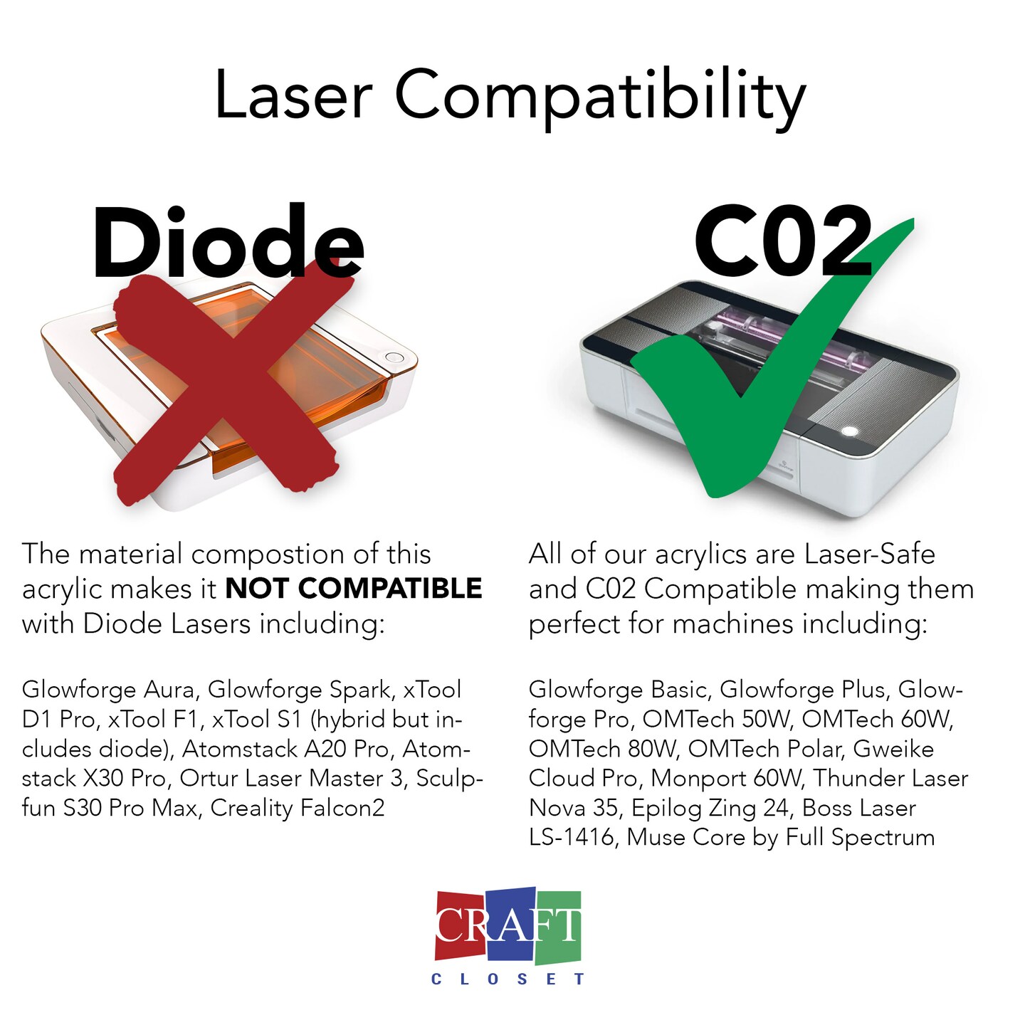 Glitz Acrylic Variety Pack, Glowforge Ready, 6 Sheets, 1/8th", 12"x19", Cast Acrylic, Craft Closet Brand