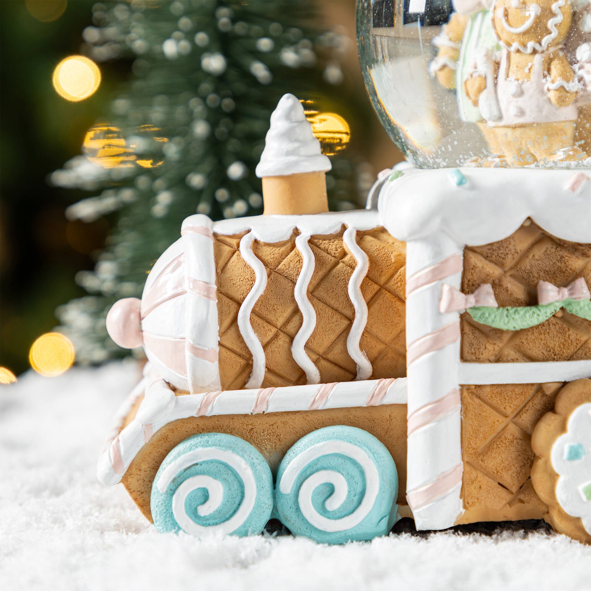 Glitzhome® 100mm Christmas Resin Musical Snowflakes Ginginerbread Family Train Waterglobe