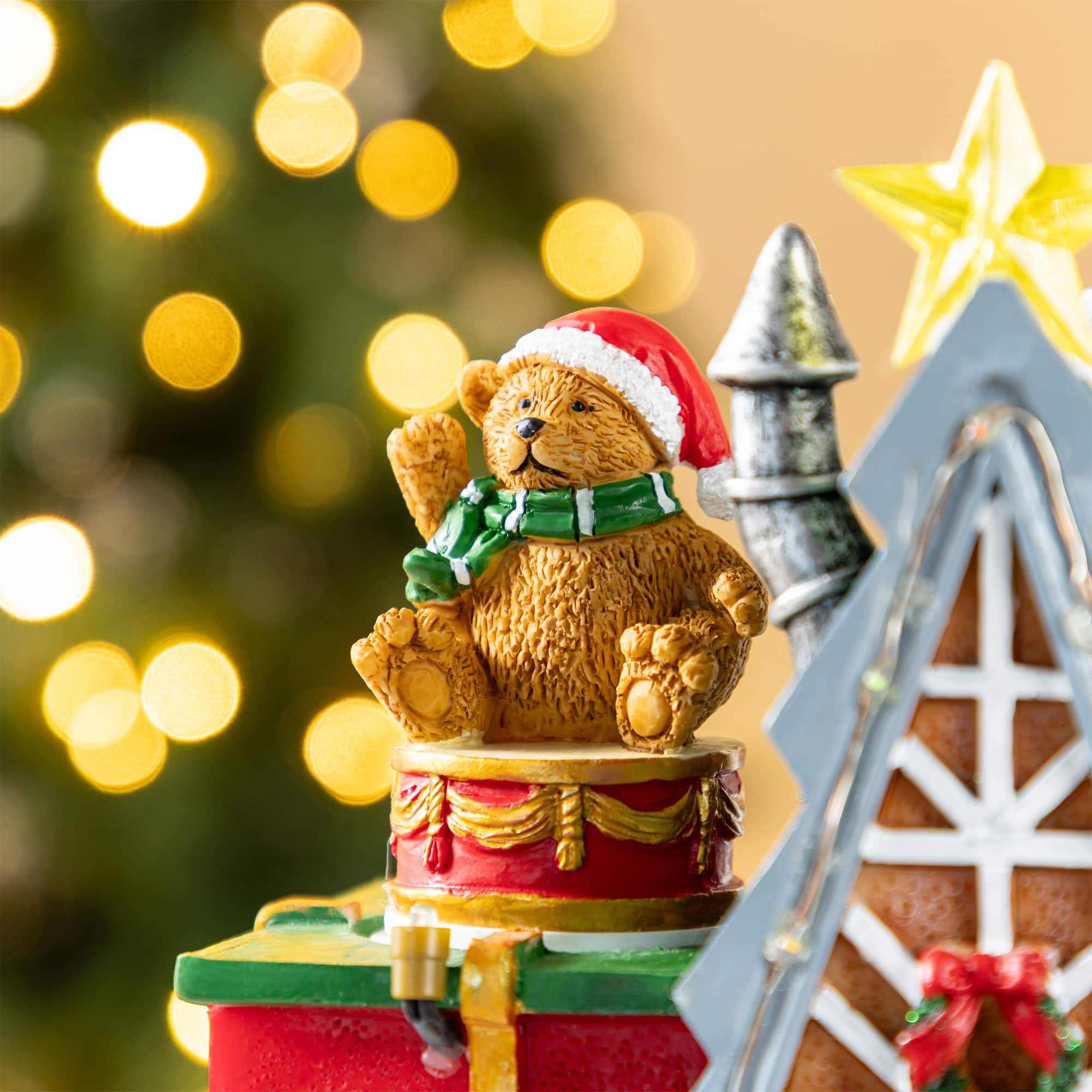 Glitzhome® 10.75" Lighted CHRISTMAS TOY MARKET Resin Village with Movement and Music