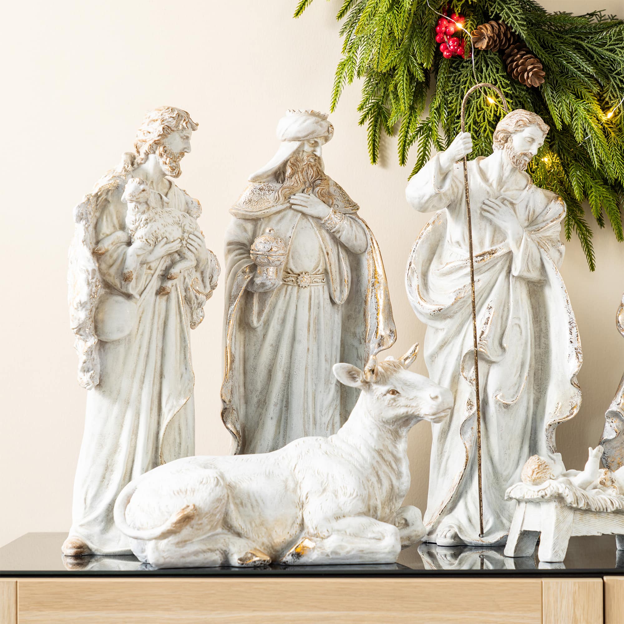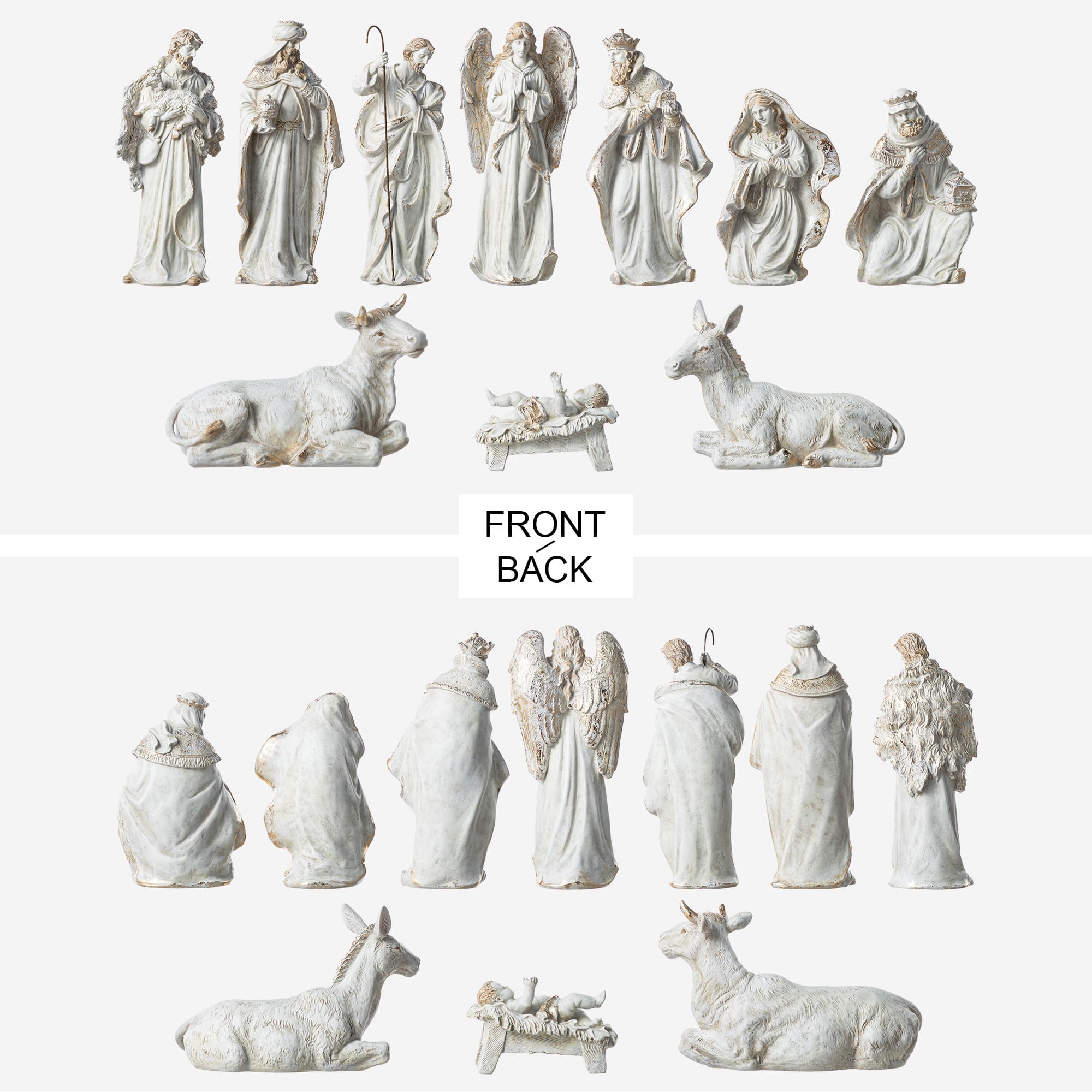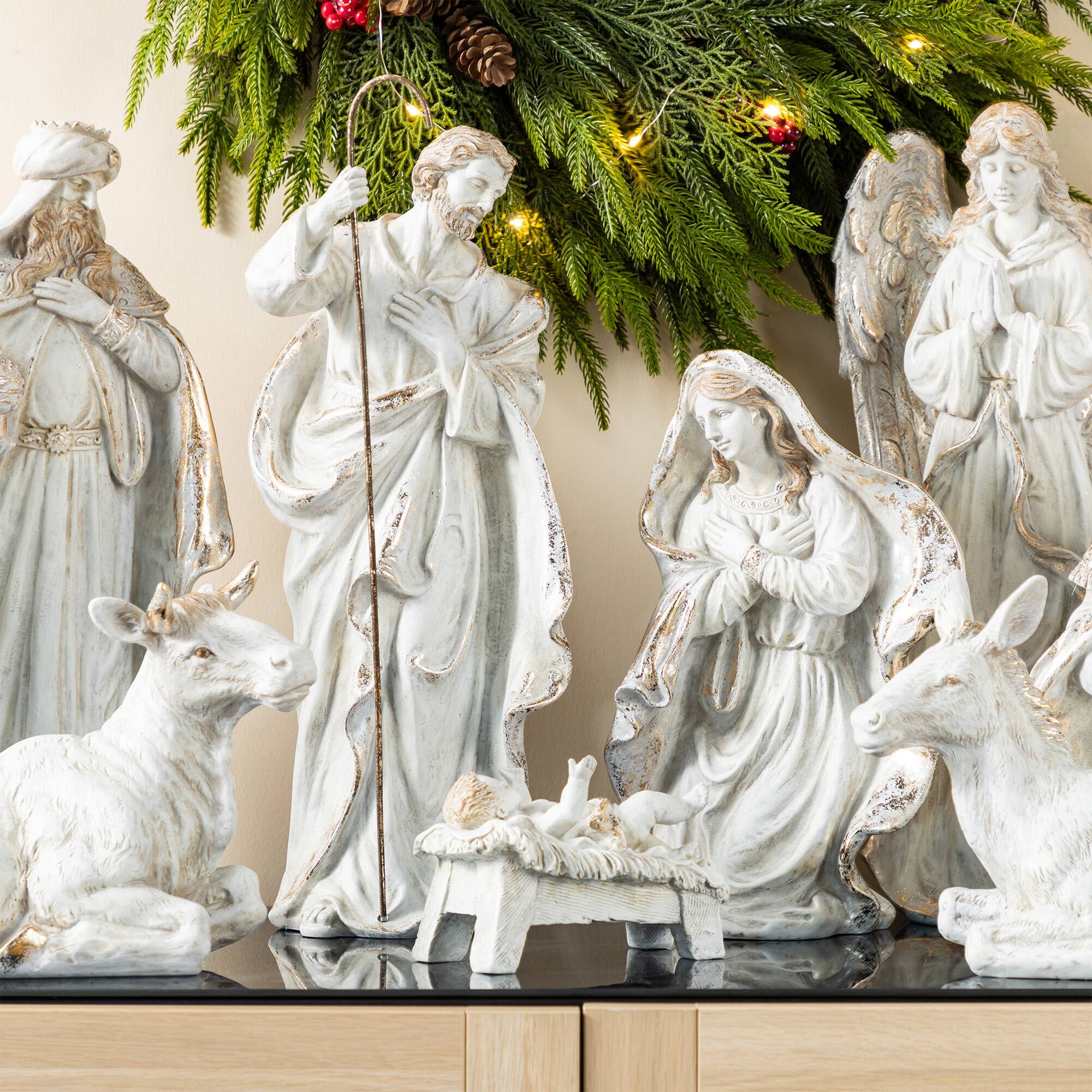Glitzhome® 10-Piece Ivory & Gold Resin Nativity Figurine Set
