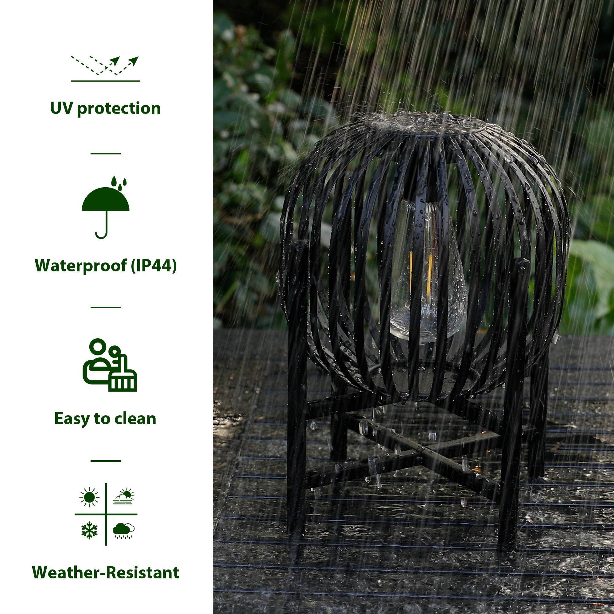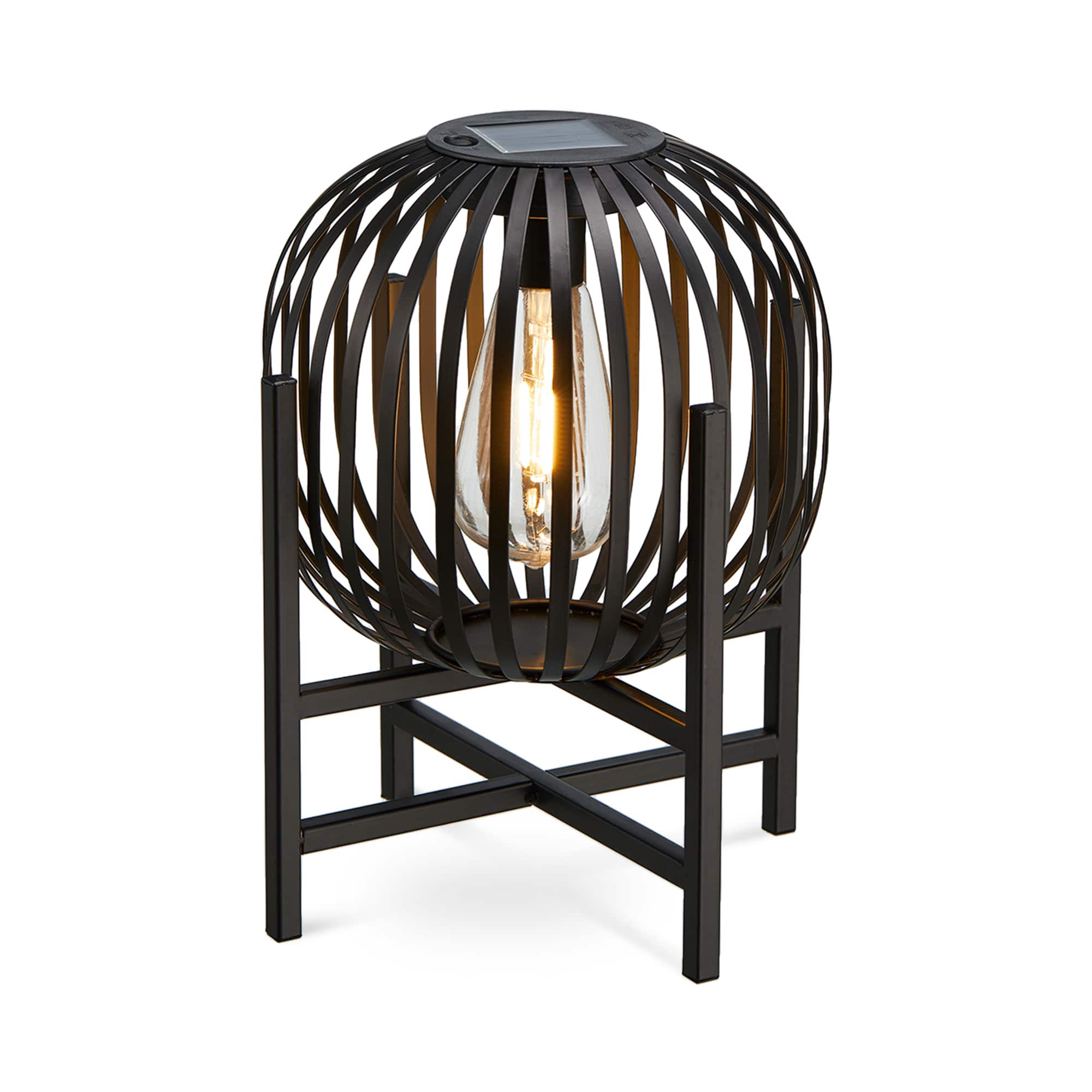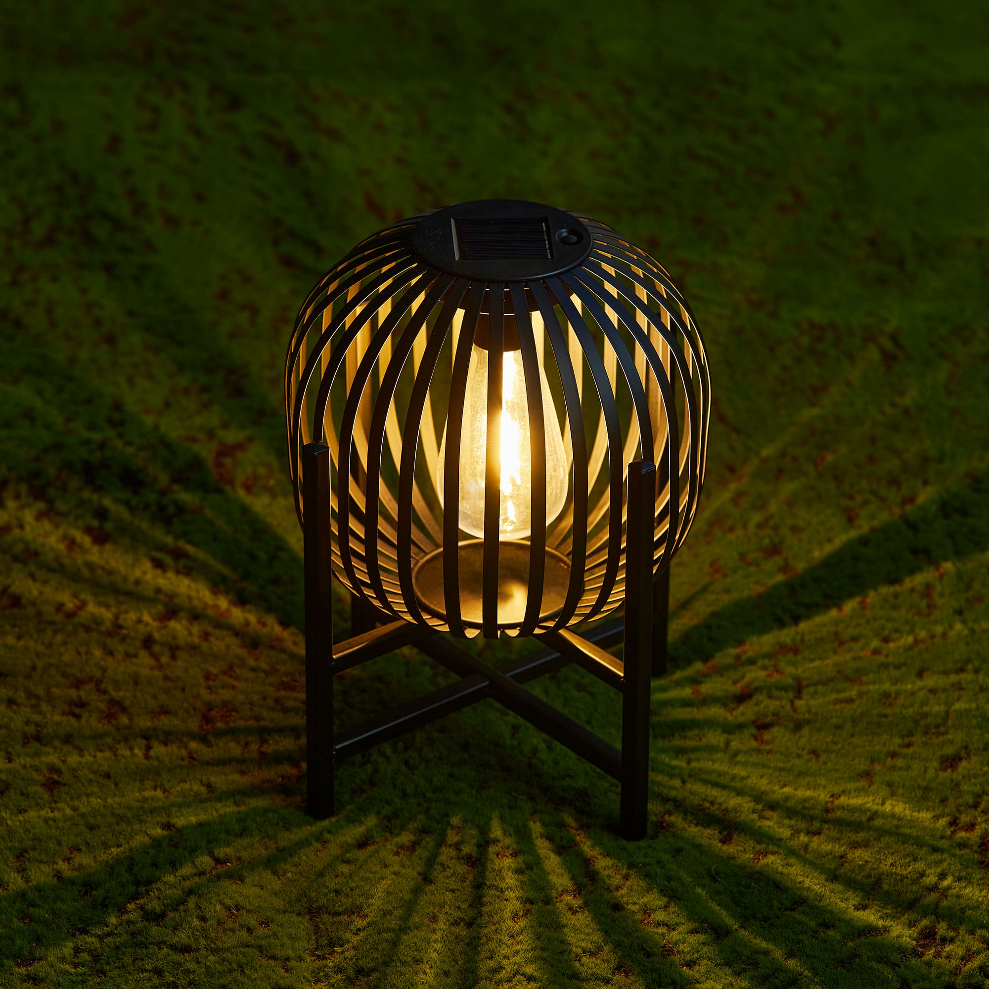 Glitzhome® 11.5" Black Slim Metal Stripes Solar Powered Edison Bulb Outdoor Lantern