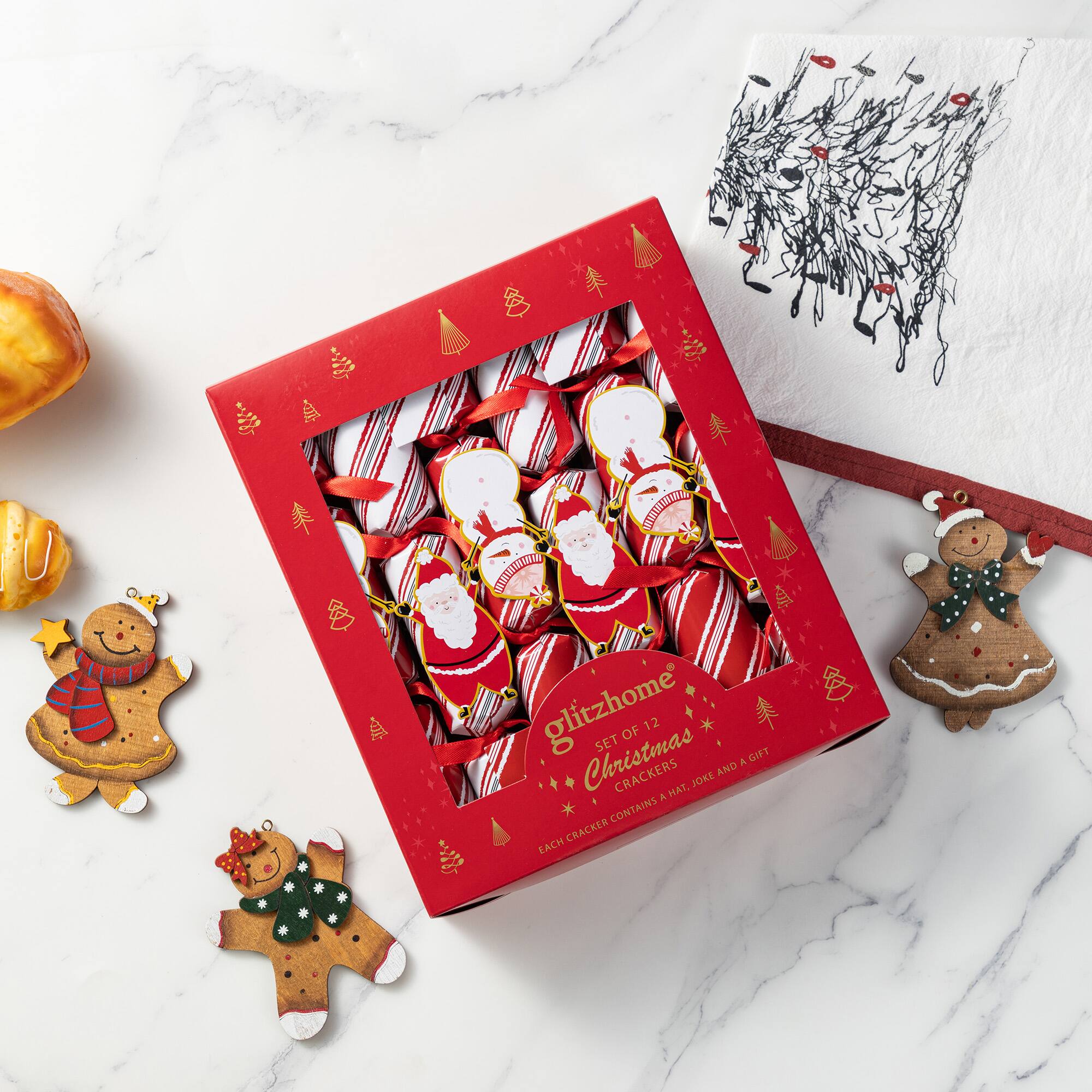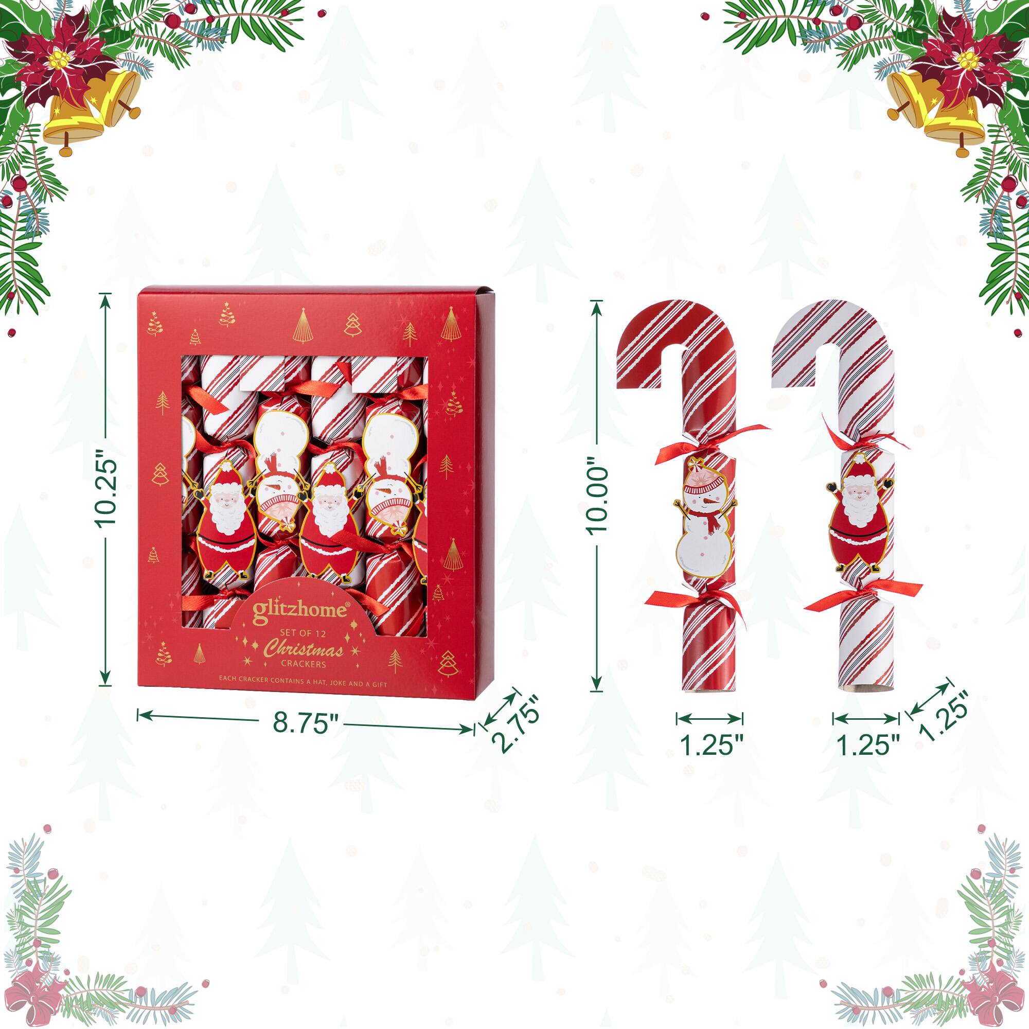 Glitzhome® 12PK 1.25"D x 10"H Candy Cane Christmas Party Crackers with Gift Contents