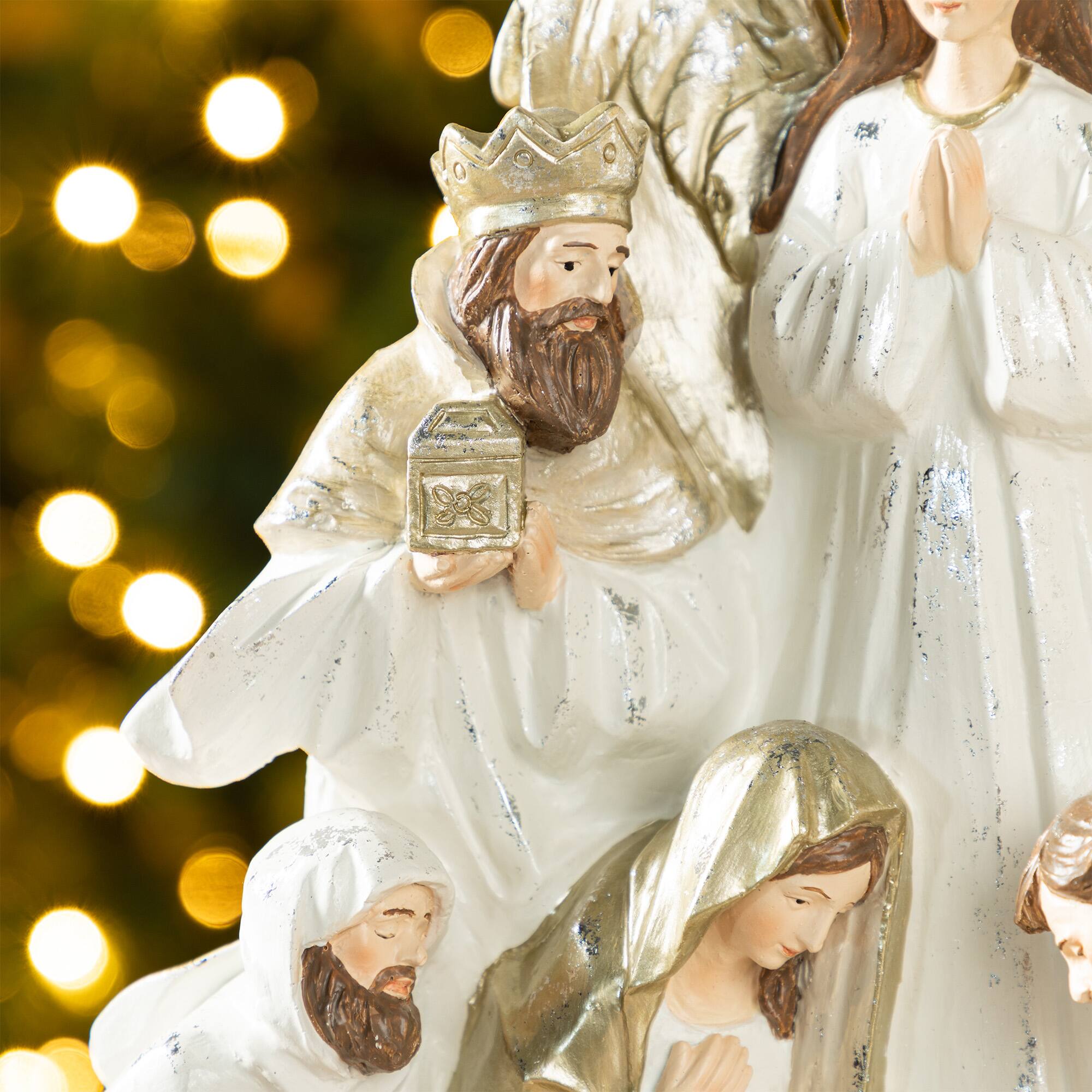 Glitzhome® 13" Ivory & Gold Resin Nativity Figurine