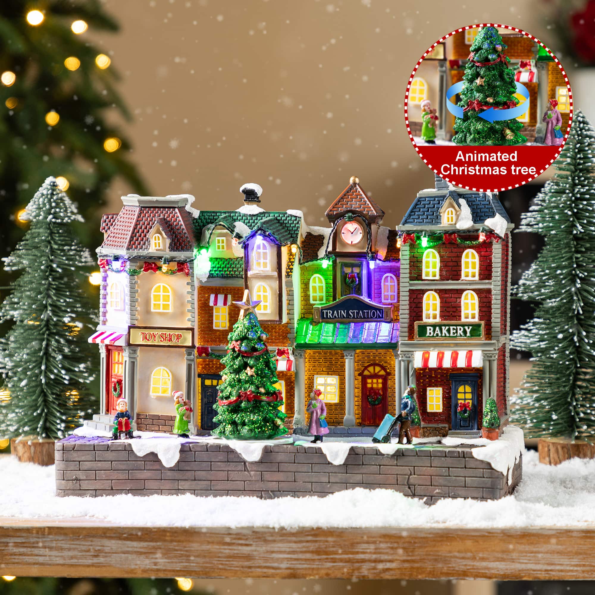 Glitzhome® 13.75" Lighted Christmas Train station Resin Village with Movement and Music