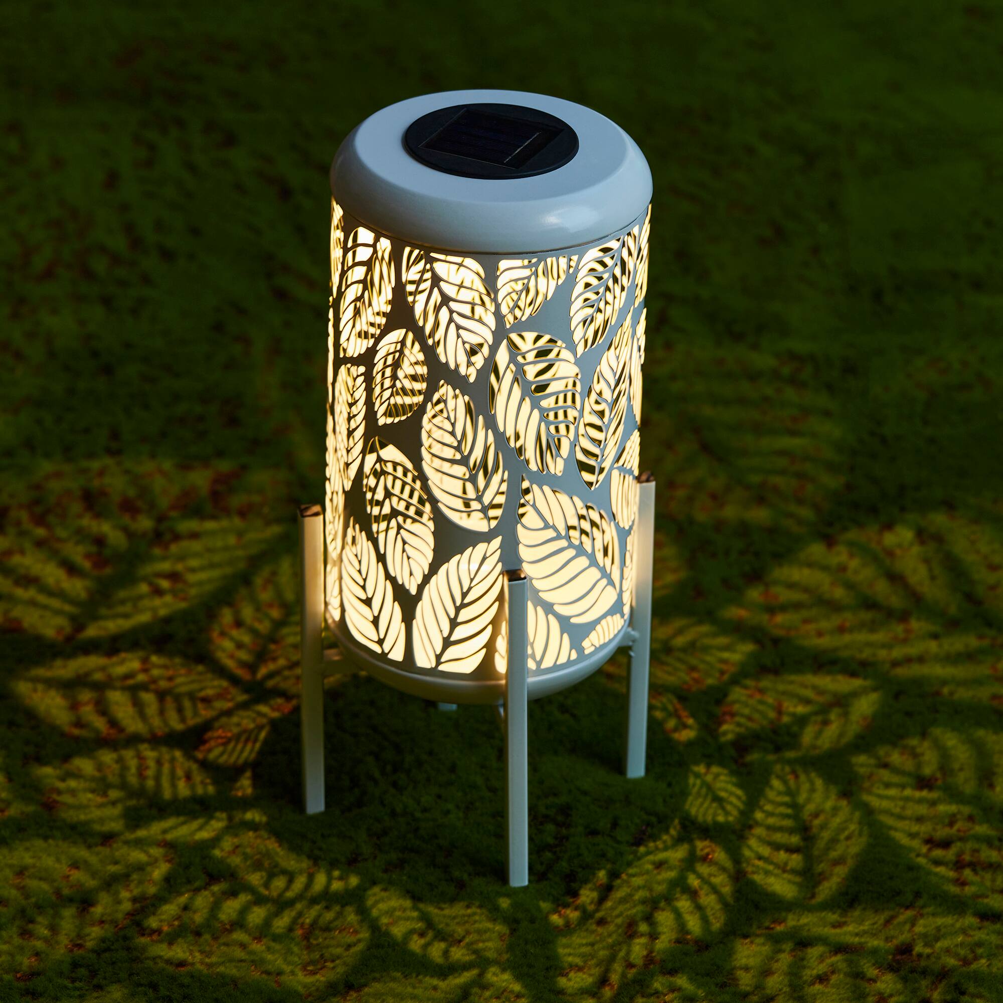Glitzhome® 14.25" White Metal Cutout Leaves Pattern Solar Powered LED Outdoor Lantern