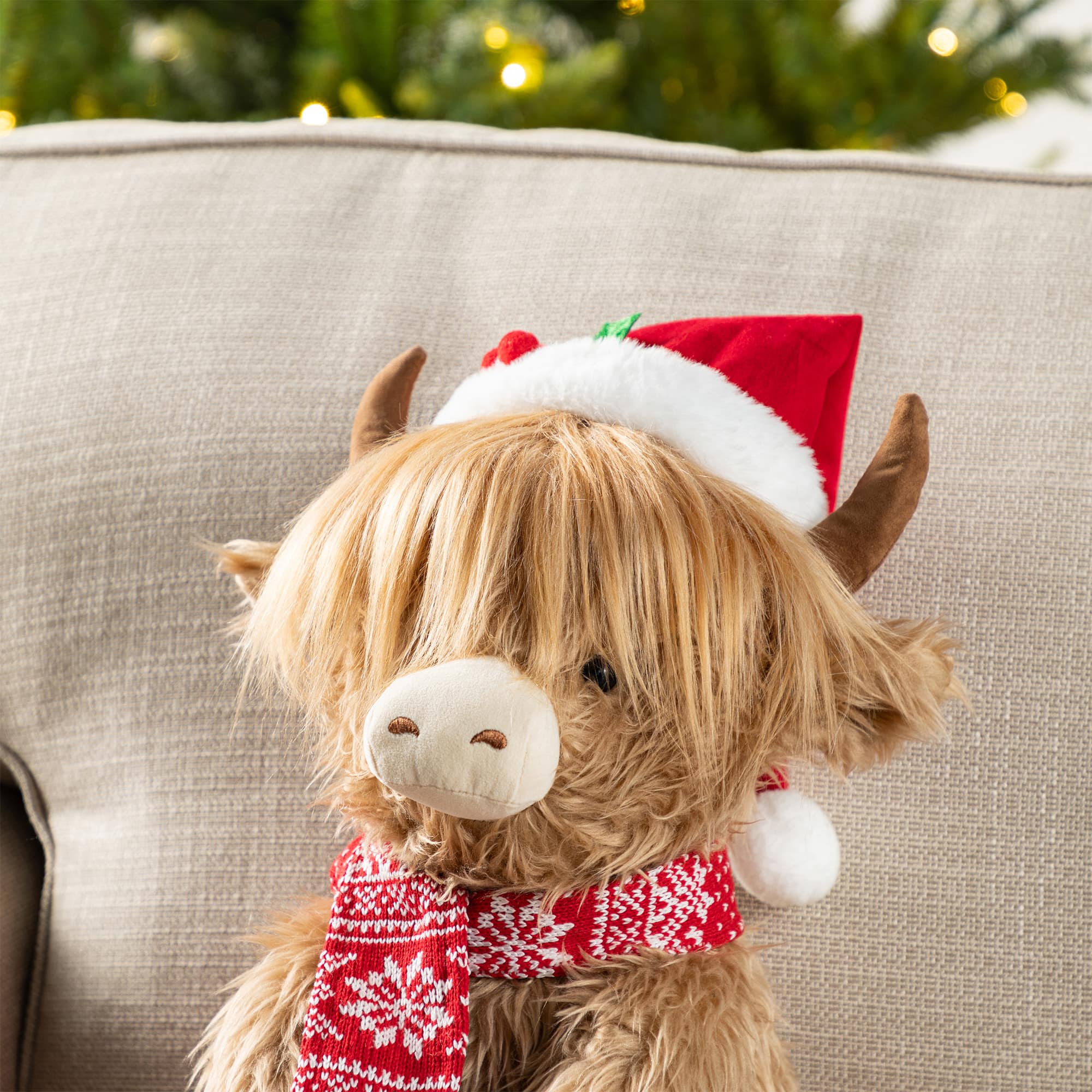 Glitzhome® 15.25"L Christmas Fabric Highland Cow