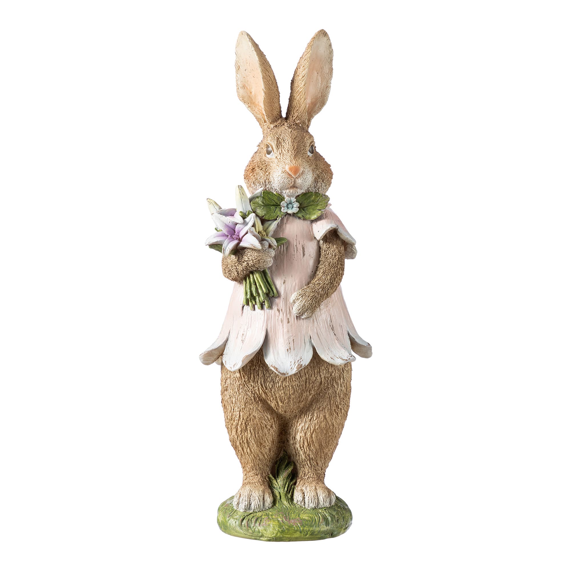 Glitzhome® 15.5" Easter Resin Bunny Girl with Flowers Table Decor