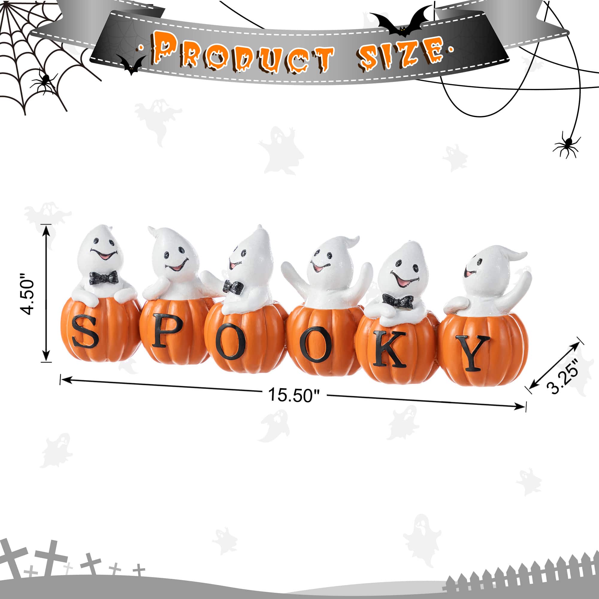 Glitzhome® 15.5"L Halloween Polyresin SPOOKY Ghost Pumpkin Table Decor