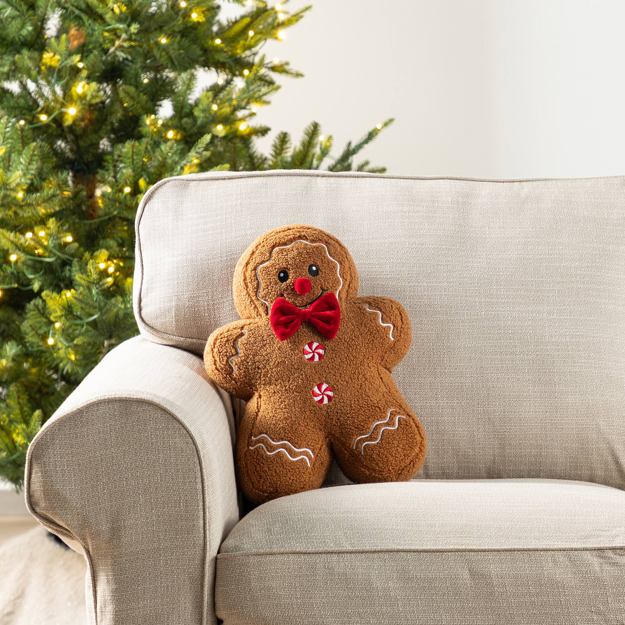 Glitzhome® 15"H Christmas Gingerbread Man Shaped Pillow