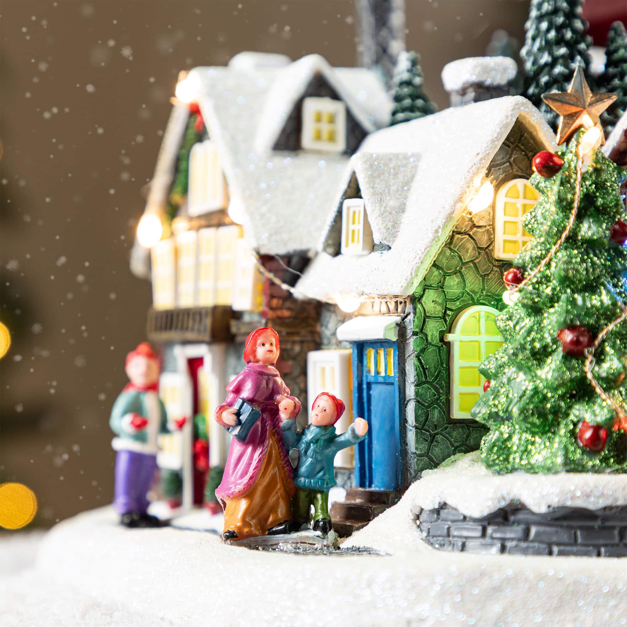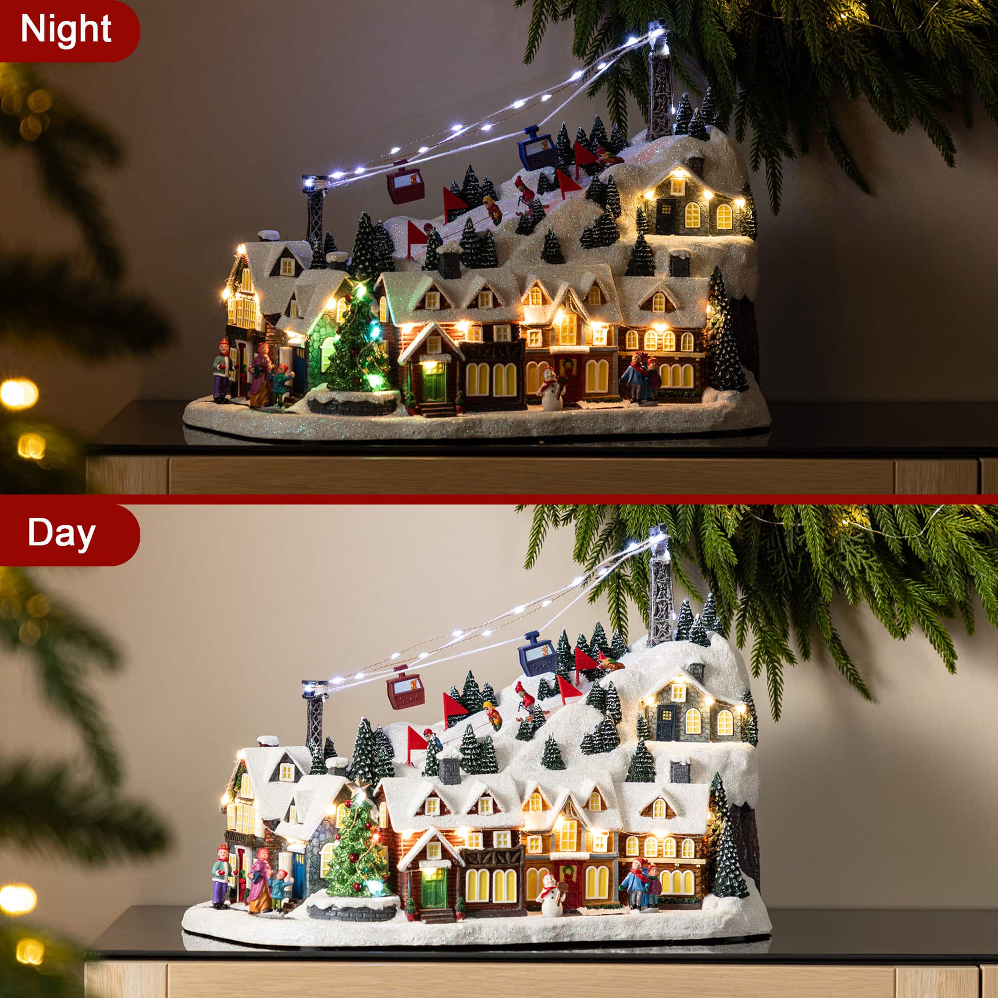 Glitzhome® 16" Christmas Oversized Resin Lighted Musical Skiing Table Village Decor