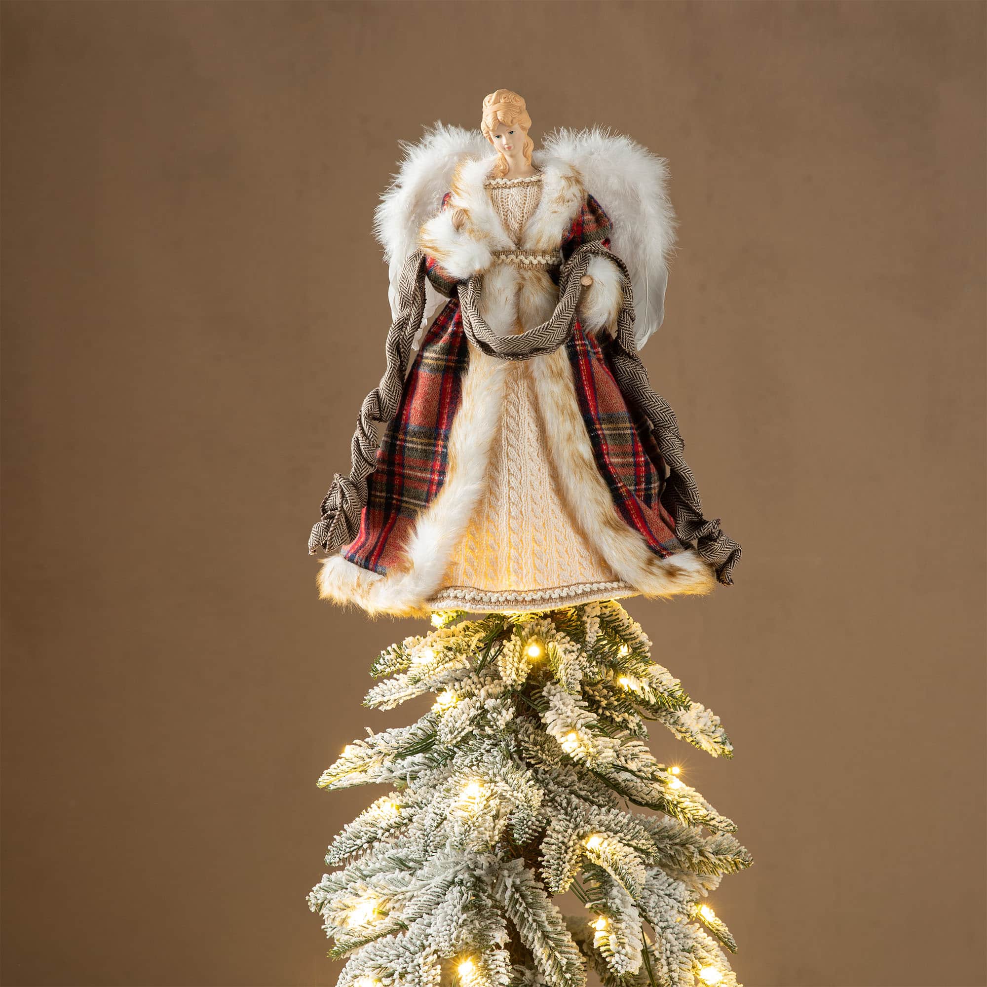 Glitzhome® 16.5" Faux Fur Woodland Christmas Angel Tree Topper